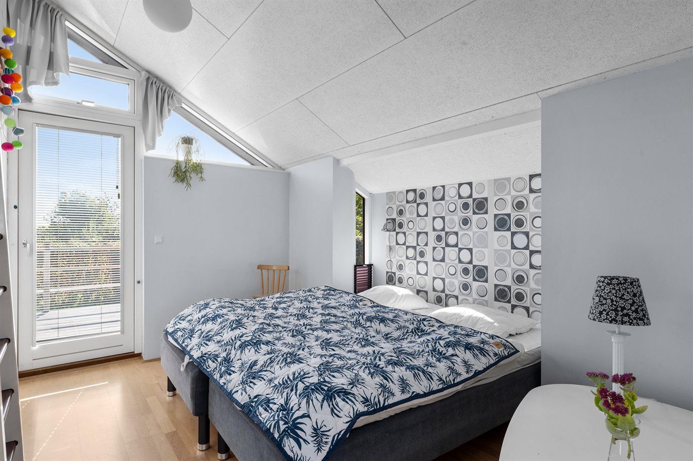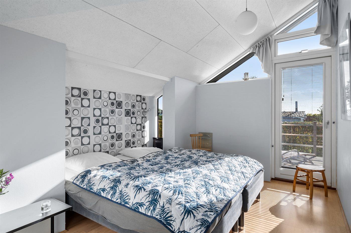 Der er i alt 2 soveværelser. Sovepladserne fordeler sig på: 4 sovepladser i dobbeltsenge. 2 sovepladser på madrasser. 2 af disse sovepladser befinder sig på husets hems. Derudover er der 1 stk. barneseng.