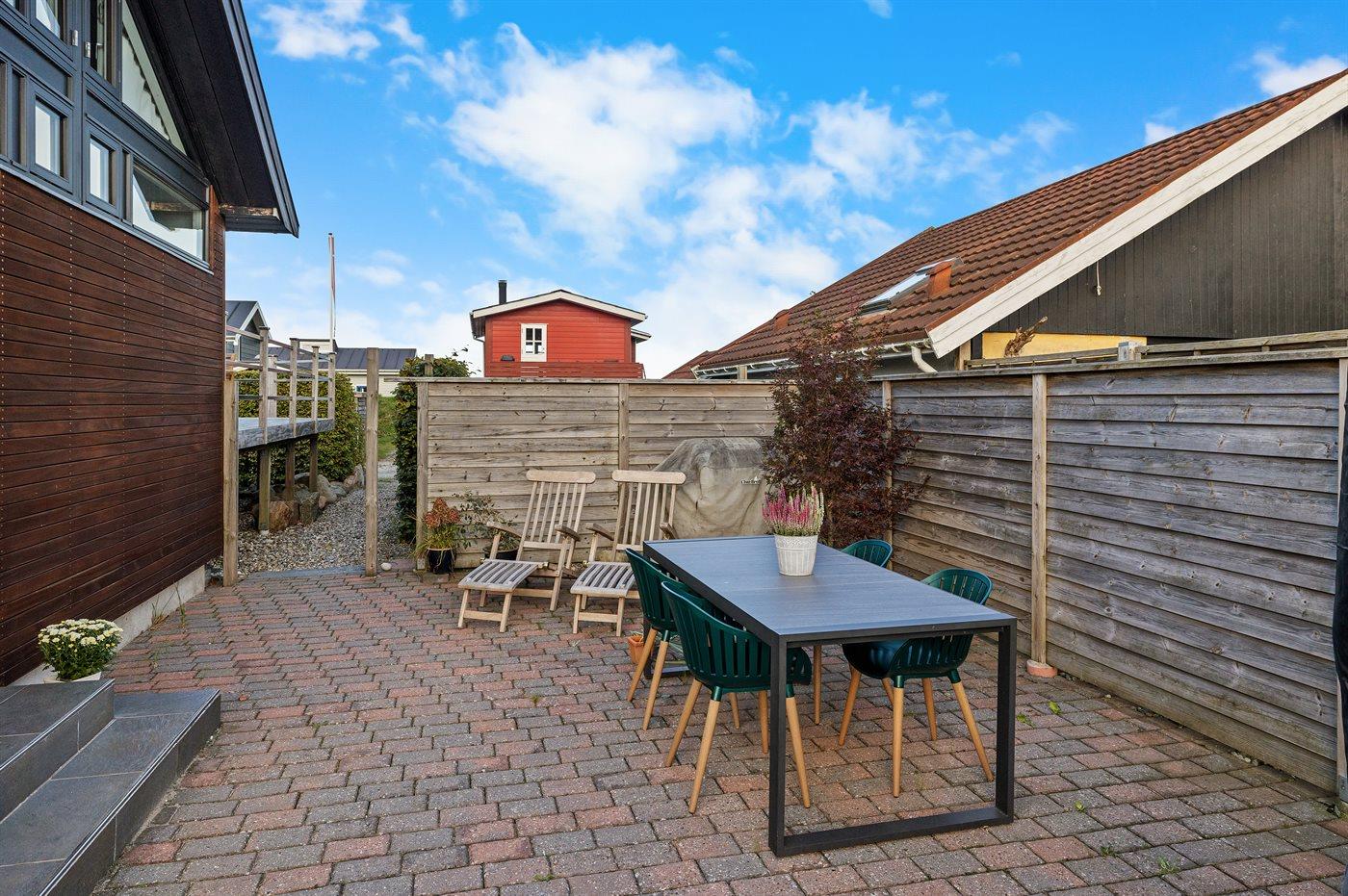 Ferieboligen er beliggende på en 934 m² stor havegrund. Der er 40 m til havet. Nærmeste forretning er beliggende i en afstand af 2800 m. Til ferieboligen hører åbent terrasseareal. Grill til rådighed. Parkering ved ferieboligen.