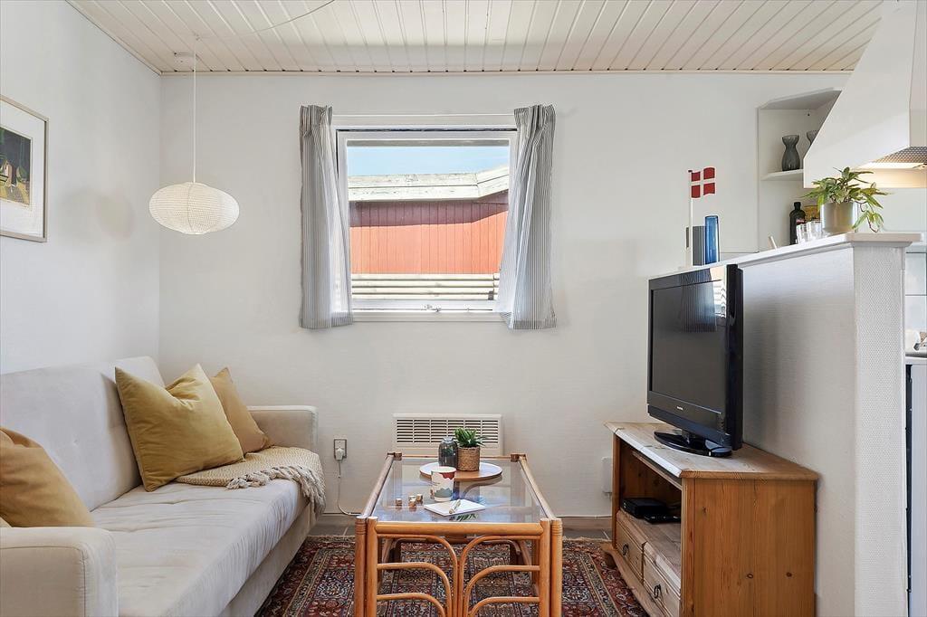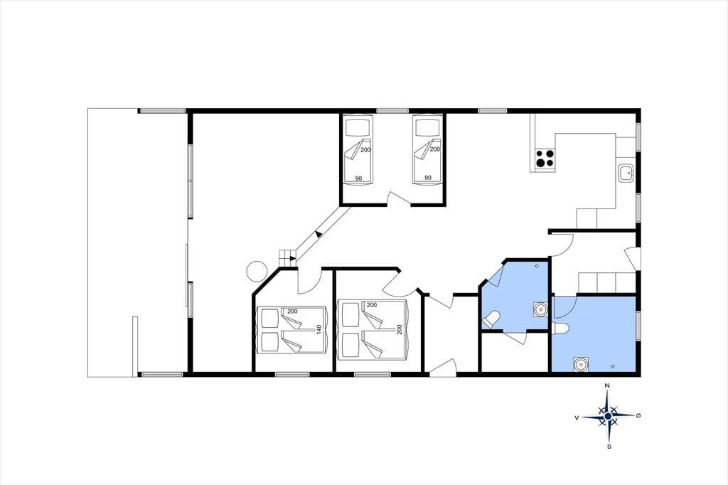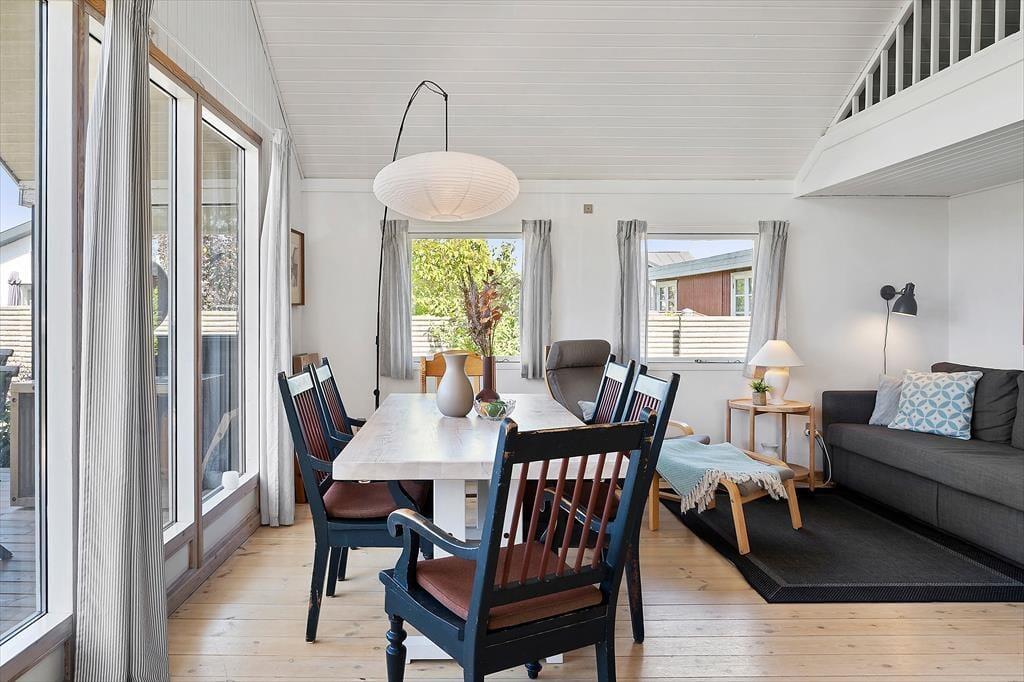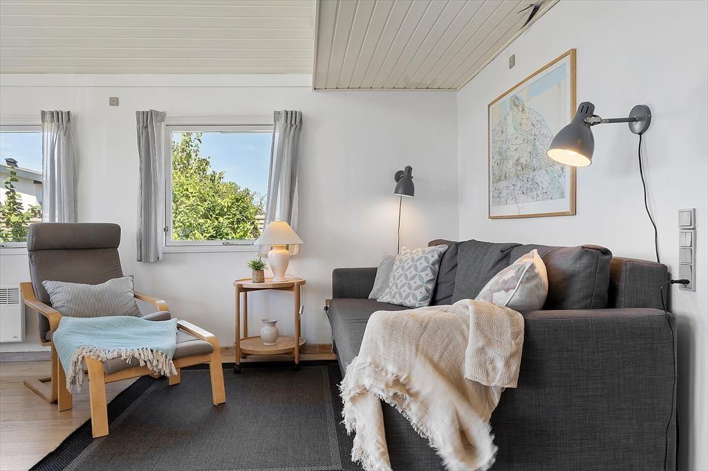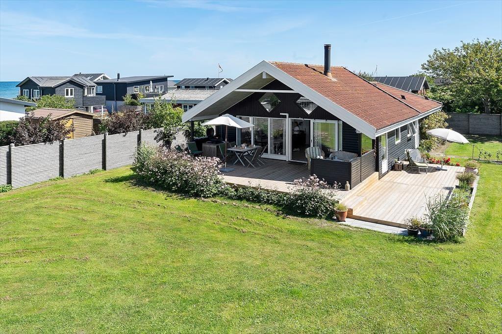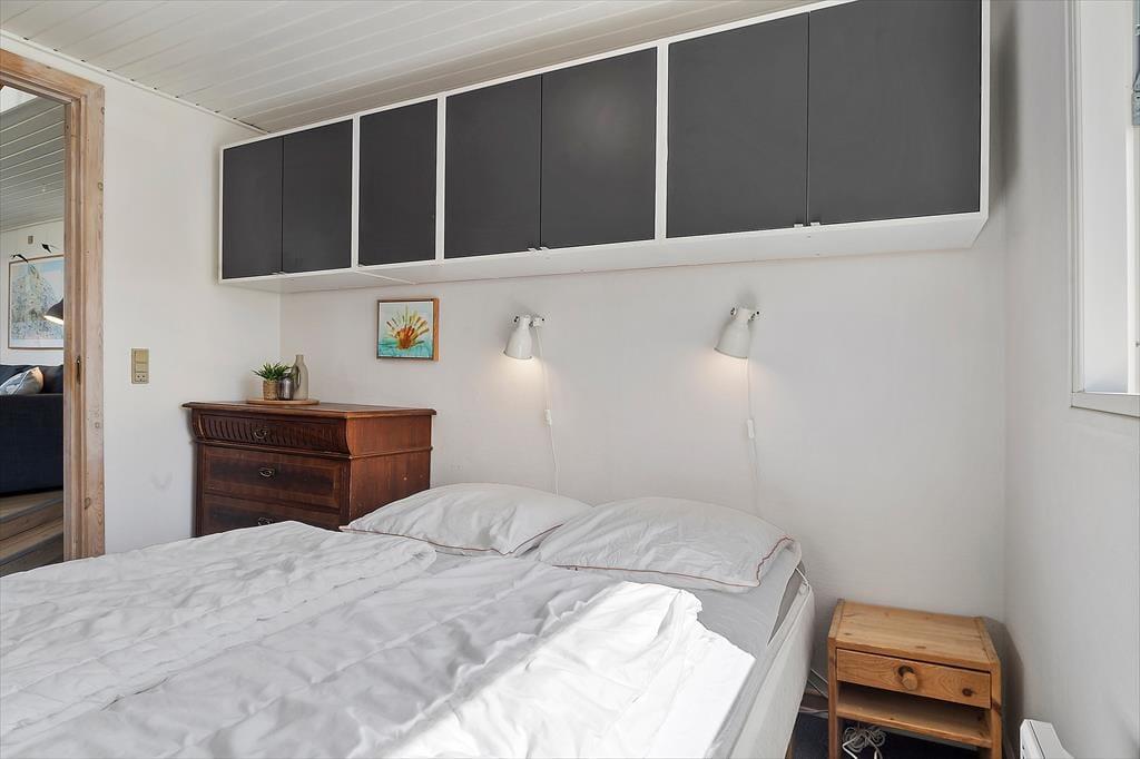 Der er gode fiskemuligheder på den kilometerlange strand. Huset ligger i enden af lukket vænge. Sommerhuset er udstyret med tre soveværelser (to med dobbeltsenge og et med to enkeltsenge), og derudover er der to gode madrasser på den ret store hems. Endelig er der en dobbelt sovesofa i det åbne køkkens forlængelse. Der er to badeværelser med varme i gulvet, hver med bruseniche og toilet. I baggangen findes vaskemaskinen. Det åbne køkken er udstyret med komfur med keramisk kogeplade og varmluftsovn, og der er emhætte, brødrister, el-kogekande, kaffemaskine samt opvaskemaskine. Stort køle-/fryseskab med ca. 100 l fryser.