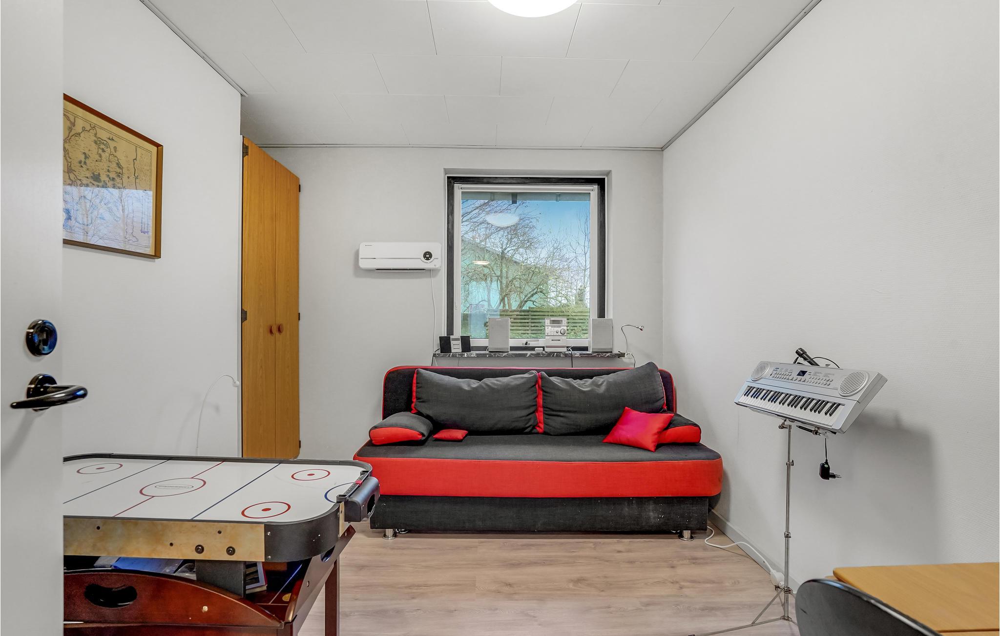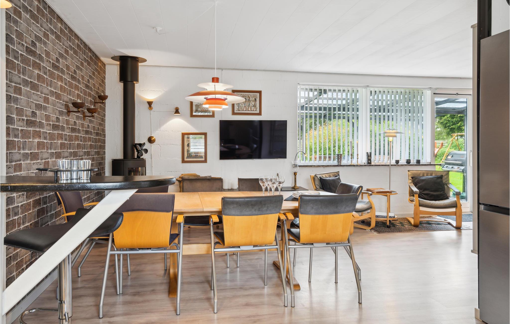 Dette skønne feriehus byder velkommen på den fynske nordkyst. Det er ideelt til den store familie, der ønsker at tilbringe masser af tid sammen. Spil airhockey sammen, syng og spil musik, eller slap af i stuen og læg fødderne op. Der er også meget at byde på i haven. Mens jeres børn leger, boltrer sig og rutsjer i haven, kan I varme jer i vildmarksbadet og lytte til fuglesangen. Planlæg jeres udflugter og aktiviteter for den kommende dag ved morgenbordet.