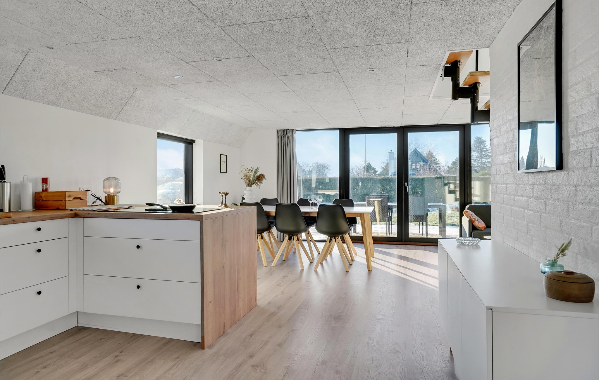 På den fynske nordkyst finder I dette helt igennem herlige hus, som emmer af lækre kvalitetsløsninger. Gennem de store vinduespartier har I ikke kun en fantastisk udsigt til havet, men får også det naturlige lys ind, så rummene virker åbne og behagelige. Her har I alt, hvad I skal bruge til en afslappende ferie ved havet. Tilbring hyggelige aftener i opholdsrummet, som bliver centrum for alle jeres aktiviteter.