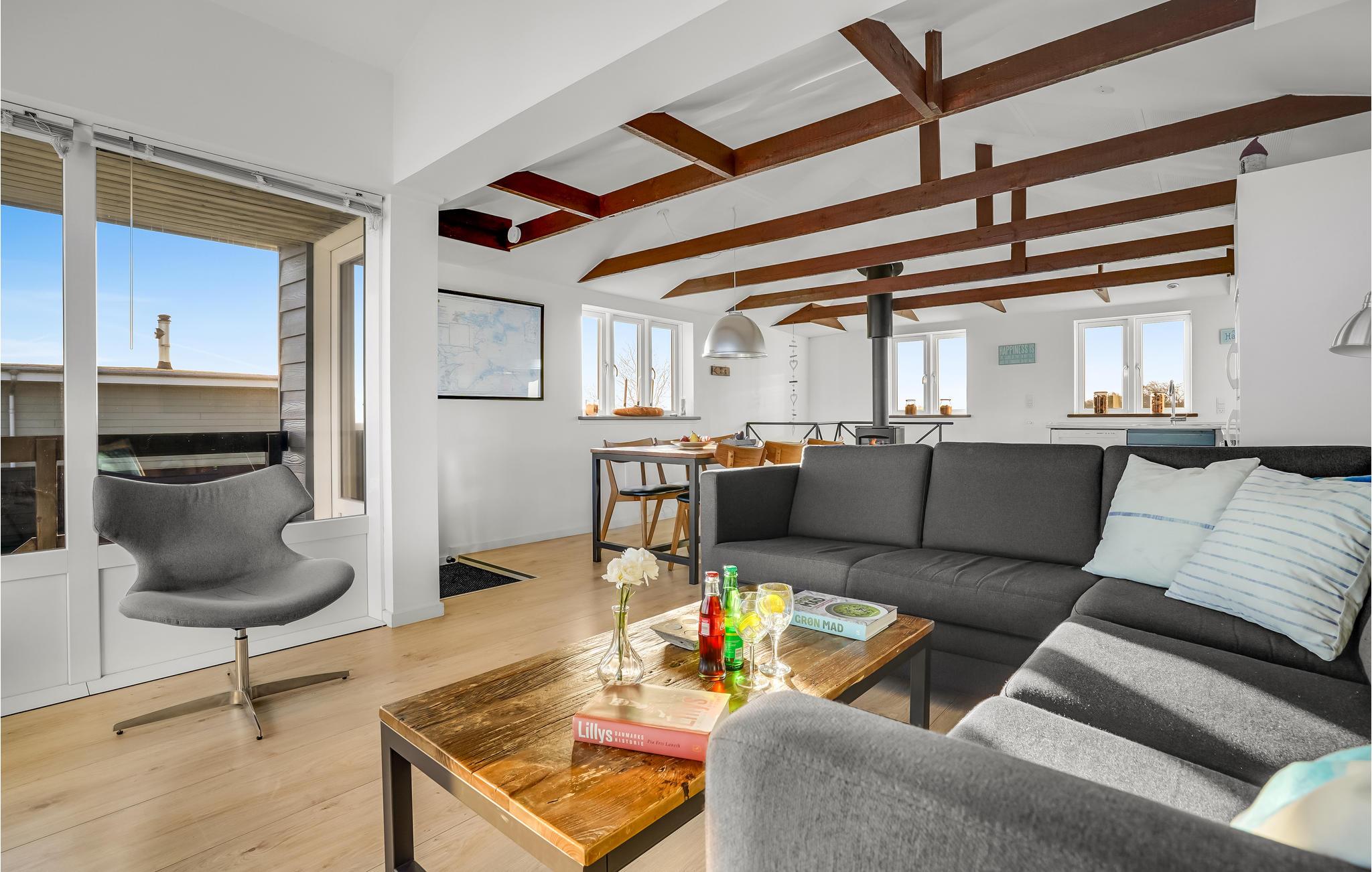Er vand det foretrukne element i jeres familie, og I kan ikke forestille jer noget bedre end at tilbringe en afslappende ferie på stranden og havet? Så er I kommet til det rigtige sted! Det smukke hus er det ideelle sted at tilbringe jeres ferie ved havet. Hovedhuset strækker sig over to etager, hvor overetagen udgør en skøn stue med stor vinduesfront. Her kan I nyde uforstyrret udsigt over stranden og havet fra sofa, spisebord og køkken. Det bliver jeres families naturlige samlingssted, da det giver jer mulighed for at forbinde alle aktiviteter, hvad enten I laver mad, spiser, leger eller slapper af. Endnu et soveværelse kan findes i annekset, så I også kan nyde jeres privatliv.