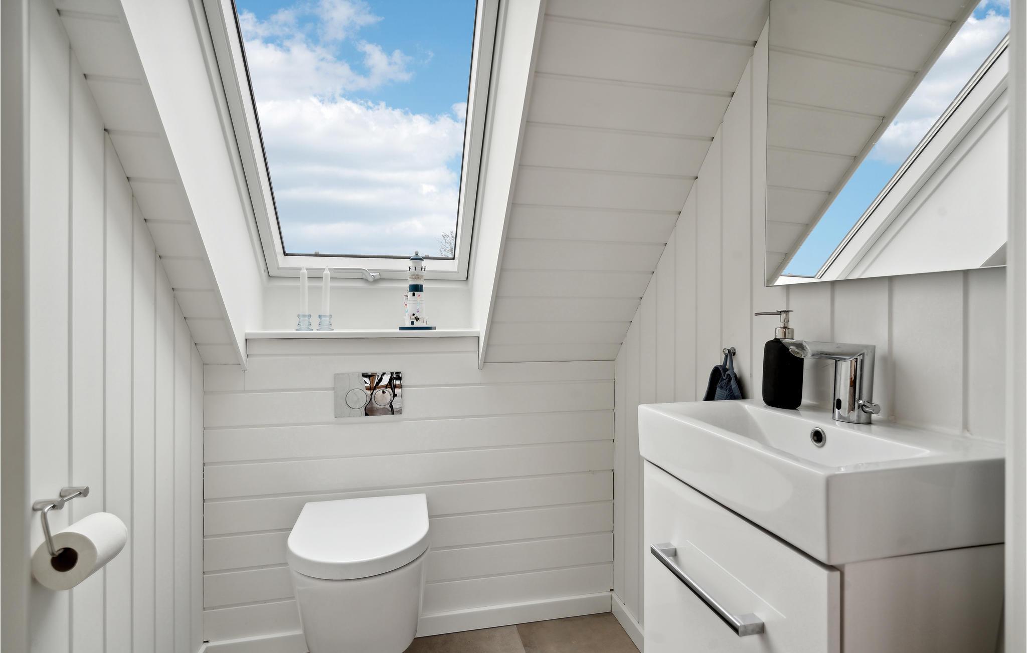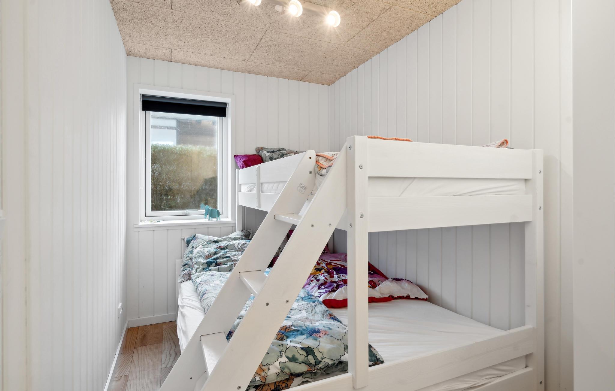 Vil I bo lige ved stranden? Ønsker I også at opleve fordelene ved et to-etagers feriehus med høj komfort og flot design? Så behøver I ikke at lede længere, for dette feriehus med en vidunderlig beliggenhed vil opfylde jeres ønsker og mere til! I dette hus på den dejlige strandgrund finder I soveværelserne i stueetagen, mens en lys opholdsstue med store panoramavinduer byder jer velkommen på første sal. Alle moderne faciliteter er til rådighed i huset. Tilbring uforglemmelige timer med at lave mad, spille spil og slappe af i sofaerne. Om morgenen kan I gå ud på terrassen med jeres kaffe, hvor et udendørs boblebad venter på jer. Stueetagens store terrasse fører ud i den private have, hvor I kan lege med jeres børn. Har I snarere lyst til at hygge jer i sandet ved det salte hav, leder havelågen jer direkte til stranden.