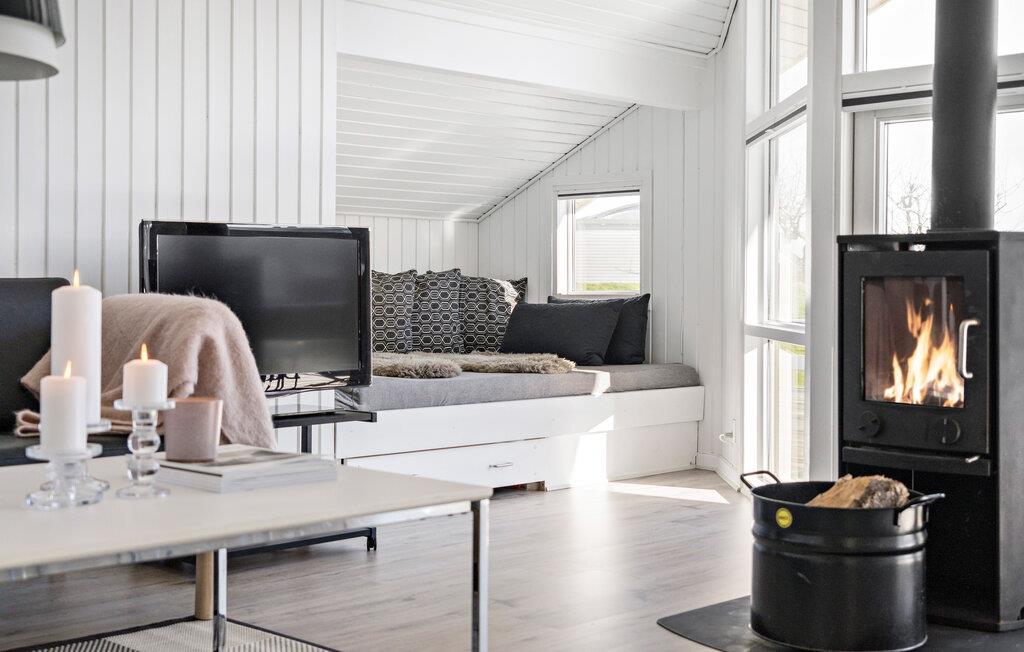 Velkommen til dette feriehus, som masser af plads til hele familien. Opholdsstuen er lys og indbydende med store vinduer ud til de helt utrolig smukke omgivelser. Slå jer ned og nyd varmen fra brændeovnen på en kølig dag eller dæk op til en skøn middag ved det store spisebord med havudsigt. Køkkenet er ligeledes dejlig lyst og åbent, så her kan I hygge jer med at kreere feriens små og store måltider.