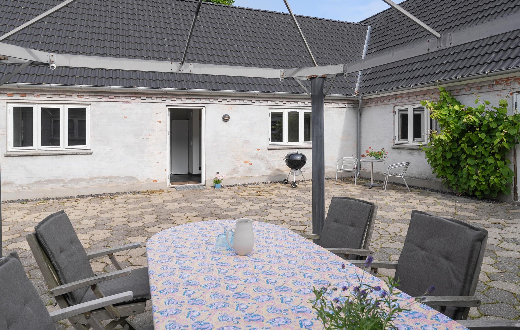 I den store have er der basketballkurv, et bålsted og en græsplæne til fodbold og udendørs leg. Dæk op til dagens måltider udendørs, når solen skinner, nyd afslappende læsestunder ved søen og tænd op i grillen om eftermiddagen.