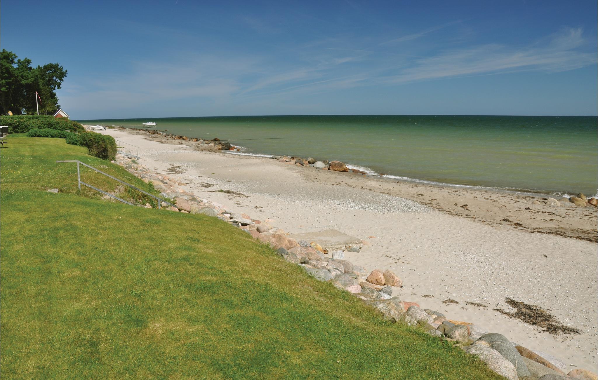 Et hyggeligt sommerhus i to plan, meget rummeligt og indrettet i en rustik og romantisk stil. Huset indeholder flere dejlige stuer, to soveværelser, to sovepladser i stuen på første sal samt en alkove og et badeværelse. Dejlig stor have med træer, så I har mulighed for både skygge og sol, og hvor I kan opholde jer ugenert. I haven er der anlagt en bålplads, hvor I kan sidde og hygge jer om aftenen. Der er kun et stenkast til den fine sandstrand med lavt badevand. Der er gode betingelser for windsurfing, så husk at tage udstyret med!