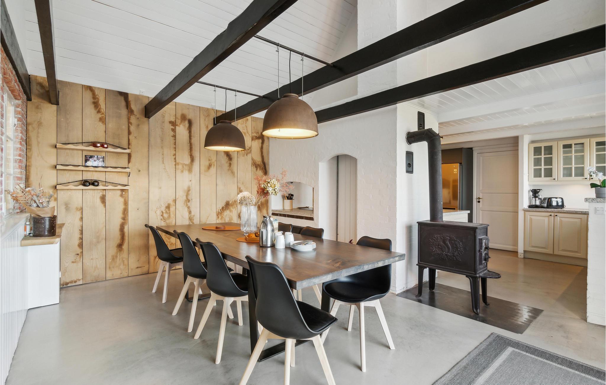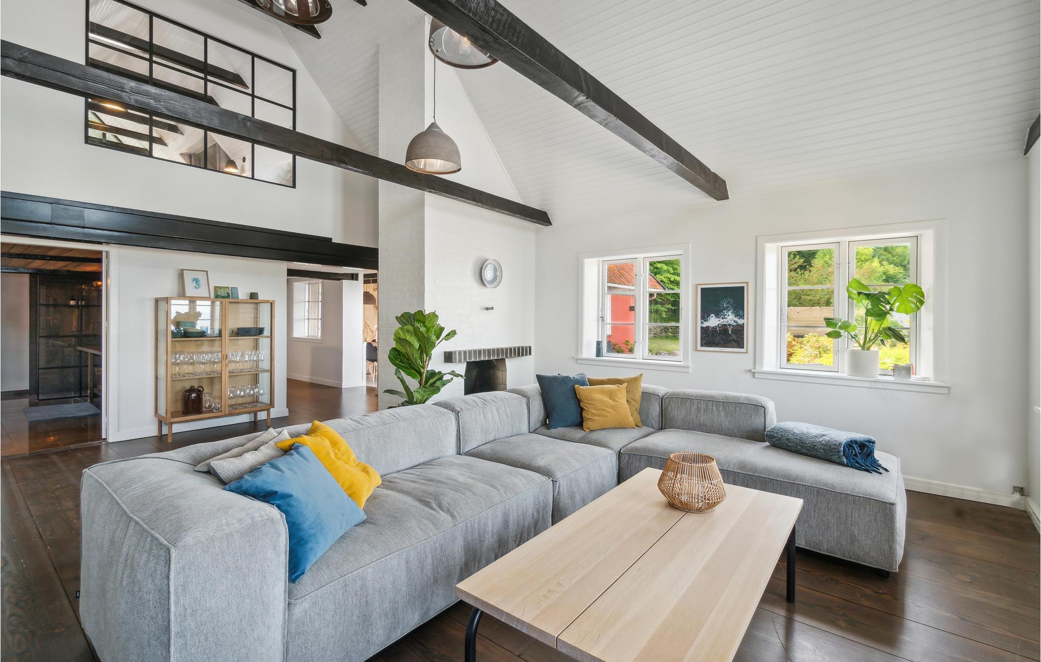 Huset kombinerer moderne og originale bygningselementer med et komfortabelt interiør i stilrent design. Uanset om I laver mad sammen, spiller brætspil ved spisebordet eller hygger på den store, grå sofa til en god film, vil I føle jer hjemme.