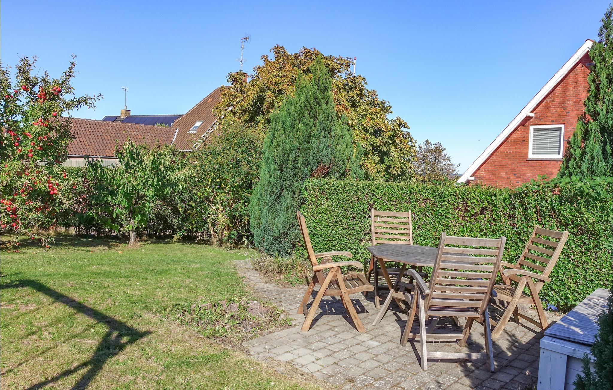 Solrige dage bliver tilbragt på terrassen med havemøbler og grill, og i den hyggelige have, hvor børnene kan svinge sig i de to gynger.