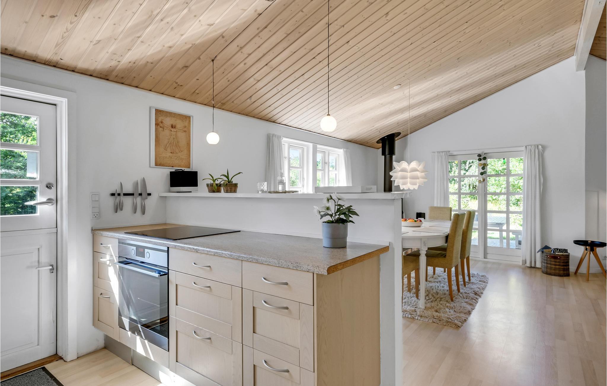 Dejligt feriehus med lyse rum, indeholdende åbent samtalekøkken ud mod spisestue/stue, både overdækket og åben terrasse hvor I kan nyde solen i fulde drag fra morgen til aften. I stuen er der brændeovn, så I kan nyde lyden af det knitrende brænde og varmen på de kølige aftener. Hele herligheden er beliggende på en 1300 m2 stor ugeneret naturgrund og tæt ved én af Danmarks bedste badestrande som er en børnevenlige sandbadestrand med klitter. Kort afstand til Sommerland Sjælland, der er et eldorado for børn i alle aldre, og for golfspillere er der hele tre baner indenfor 30 minutters køretid. Det specielle lys i Odsherred har tiltrukket mange kunstnere og det giver mulighed for at besøge de mange gallerier rundt omkring. Et besøg værd er også Nykøbing Sjælland by som har talrige indkøbsmuligheder med flere supermarkeder og en hyggelig gågade med specialforretninger og caféer, eller tag til Rørvig og nyd stemningen på havnen, hvor der kan købes og nydes friskfangede og nyrøgede fisk hver dag, mens børnene fanger krabber fra molen. For lystfiskere er området et eldorado, men der er også kort afstand til Havnebyen, Odsherreds eneste rigtige fiskerihavn, hvor I kan købe frisk og nyrøget fisk på havnen.