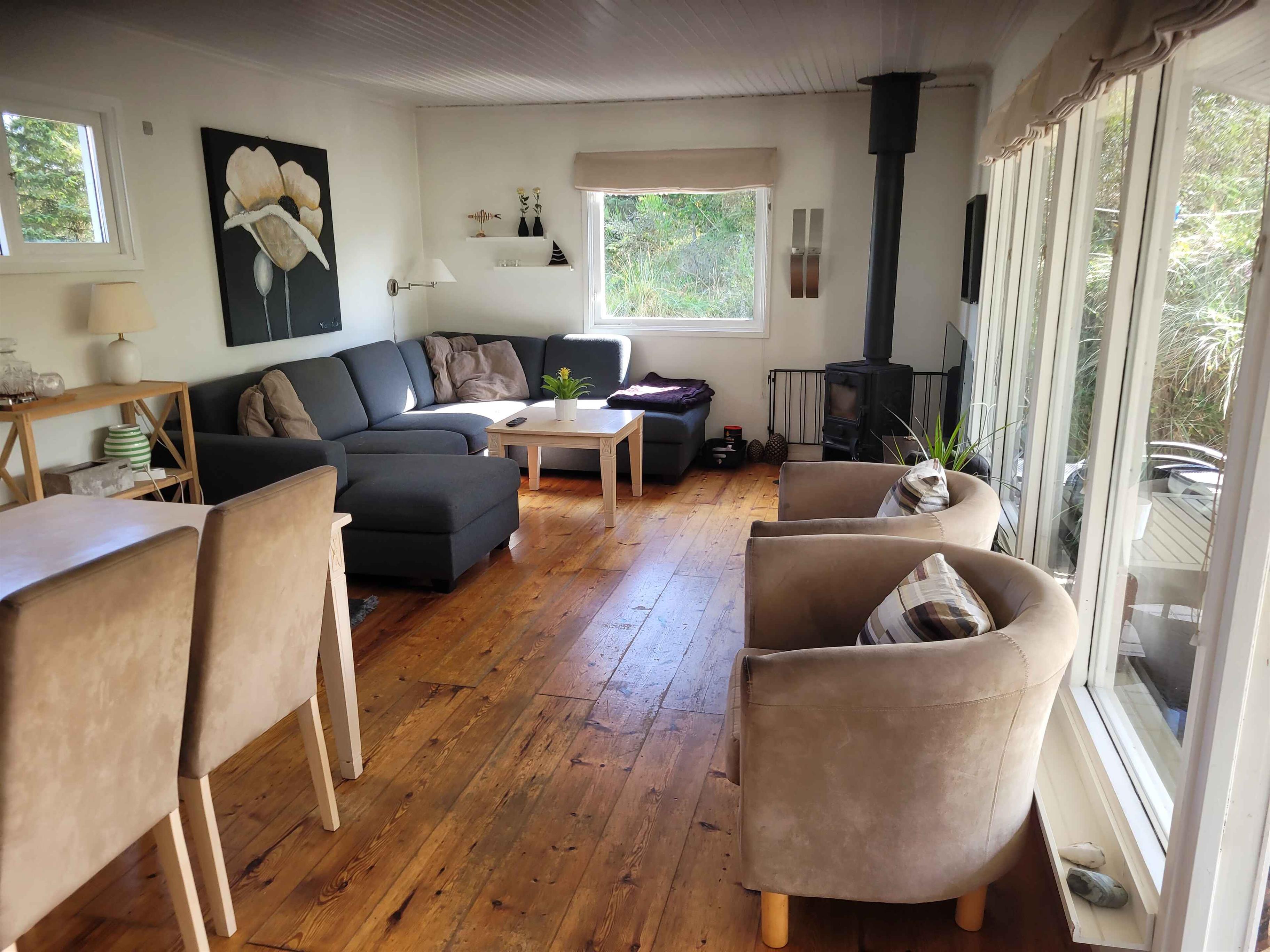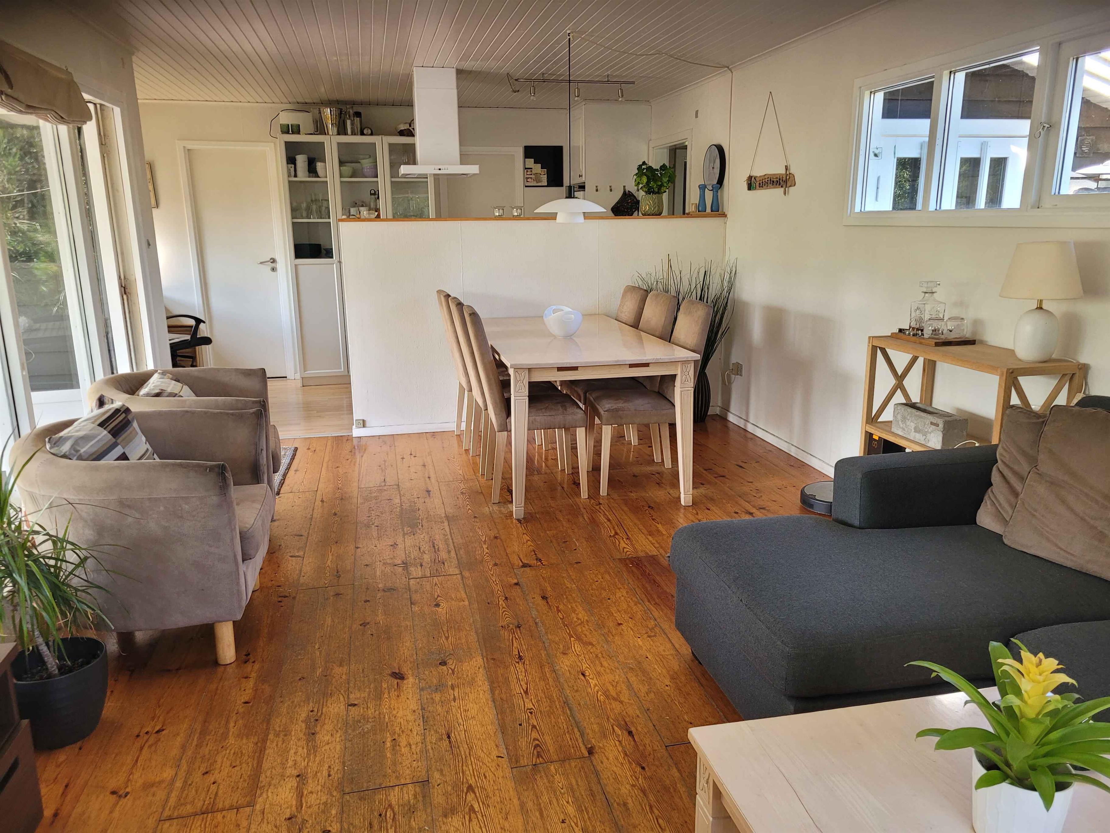 Hyggeligt sommerhus på 70 m² med 3 soveværelser og plads til 6 personer. Pejs, varmepumpe og gulvvarme i bad. Stor naturgrund med bæk og marker. 1 km til Vesterhavet. Grill, WiFi og mulighed for anneks. Roligt husdyr tilladt.