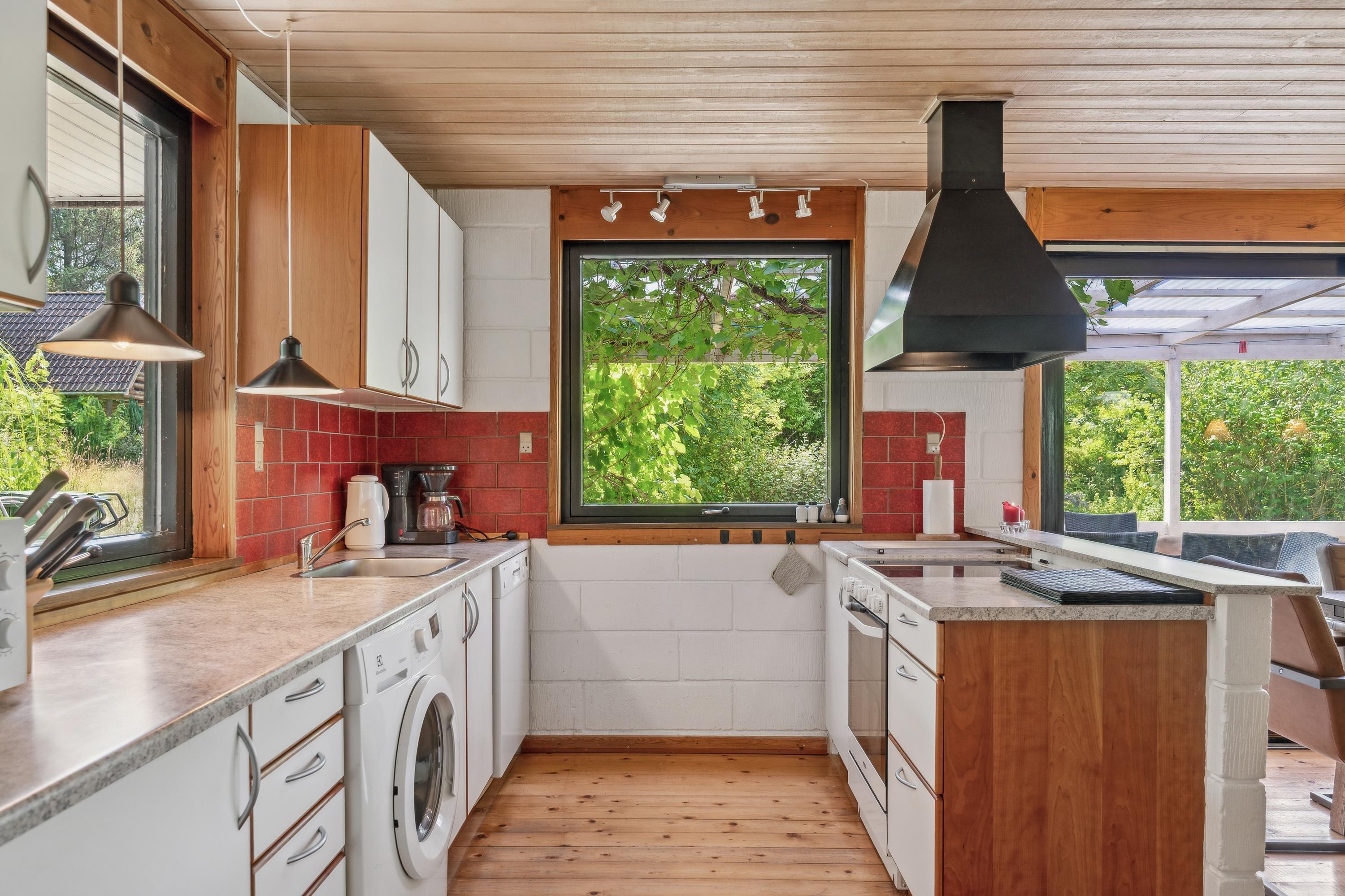 I fredelige og smukke omgivelser på Djursland finder man dette ældre men hyggelige feriehus i to plan. I underetagen finder man en god stue med b.la. brændeovn og varmepumpe og hvorfra der er udgang til en overdækket terrasse med havemøbler. I forbindelse med stuen finder man det funktionelle køkken med b.la. opvaskemaskine. Pænt badeværelse med bruseniche. På 1 salen finder man husets sovepladser. Huset er beliggende på en stor grund med græsplæne og træer, velegnet til leg og hygge. I området finder man skove og marker med masser af dyreliv. Der er 10 min kørsel til stationen i Kolind hvis man vil med letbanen enten til Grenaa eller Aarhus.