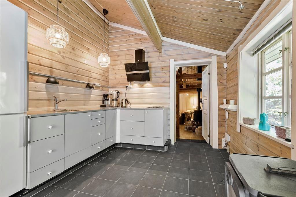 Køkkenet er også stort og der er mulighed for at sidde der og nyde maden, hvis vejret ikke tillader at være udenfor.