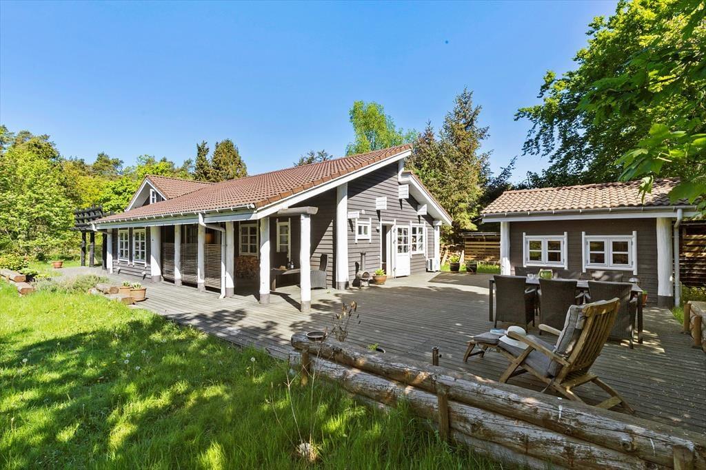 Huset er beliggende på en virkelig skøn grund med naturen lige udenfor døren. Her er mange muligheder for afslapning i rolige og hyggelige omgivelser for både børn og voksne, og man kan rigtig følge med i det fantastiske dyreliv og opleve både fasaner, harer og rådyr på tæt hold.