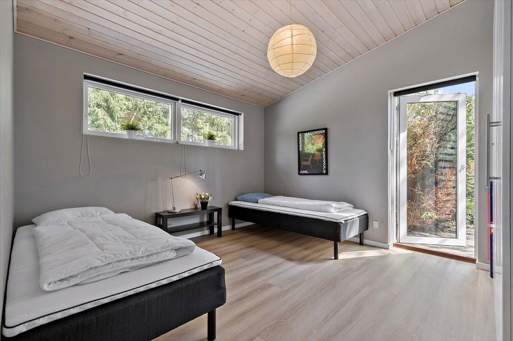 Glæd dig til en stor, hyggelig og helt lukket have, hvor du kan finde ro og privatliv – uanset om du vil slappe af i solen, læse en god bog eller nyde et måltid i det fri. Haven er omgivet af træer og grønne omgivelser, som skaber en fredelig stemning og gør det nemt at koble helt af. På den store grund på over 3.100 m² er der masser af plads til både leg og afslapning, og den skønne terrasse indbyder til lange aftener under åben himmel. Her kan du mærke freden, langt fra hverdagens larm – og alligevel har du kun kort afstand til både indkøb, strand og aktiviteter.