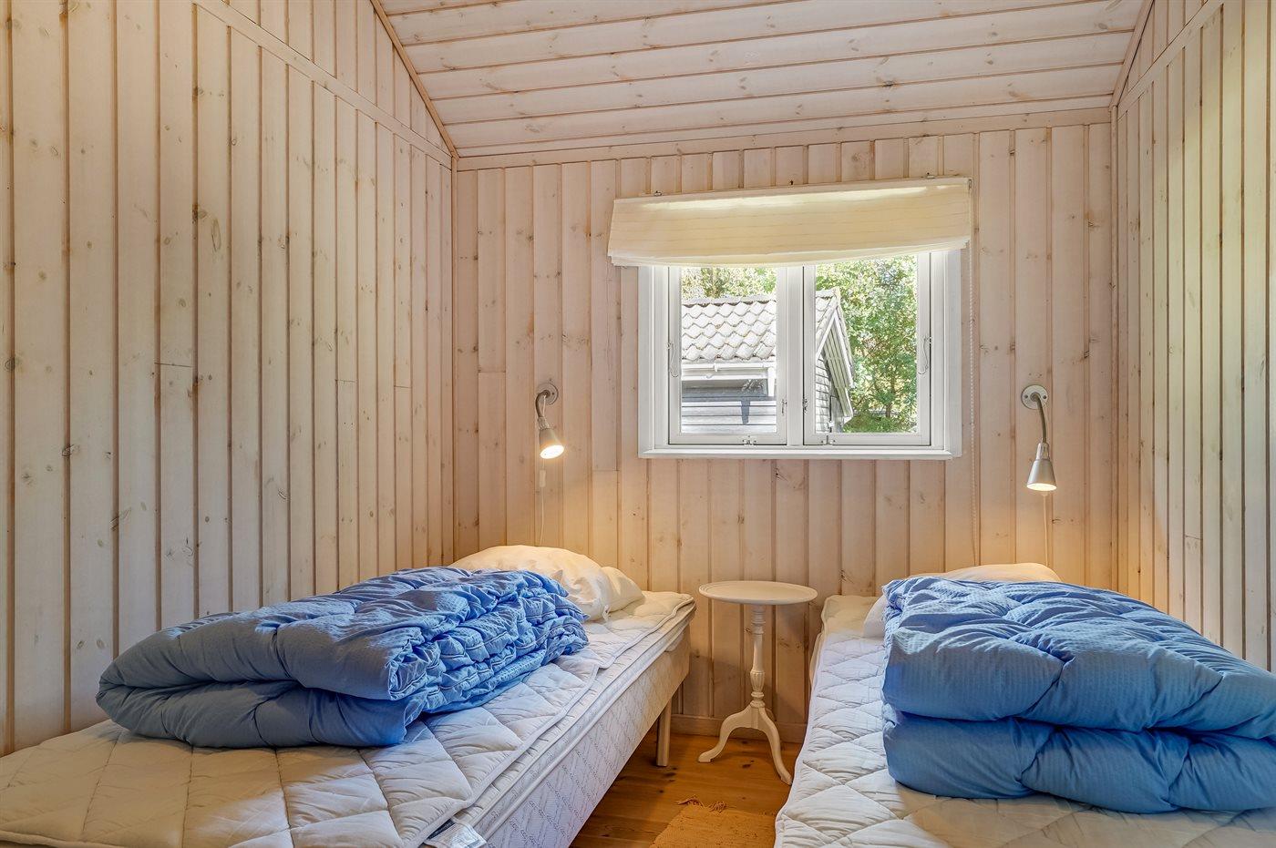 Der er i alt 2 soveværelser. Sovepladserne fordeler sig på: 2 sovepladser i dobbeltseng. 2 sovepladser i enkeltsenge. Derudover er der 1 stk. barneseng.