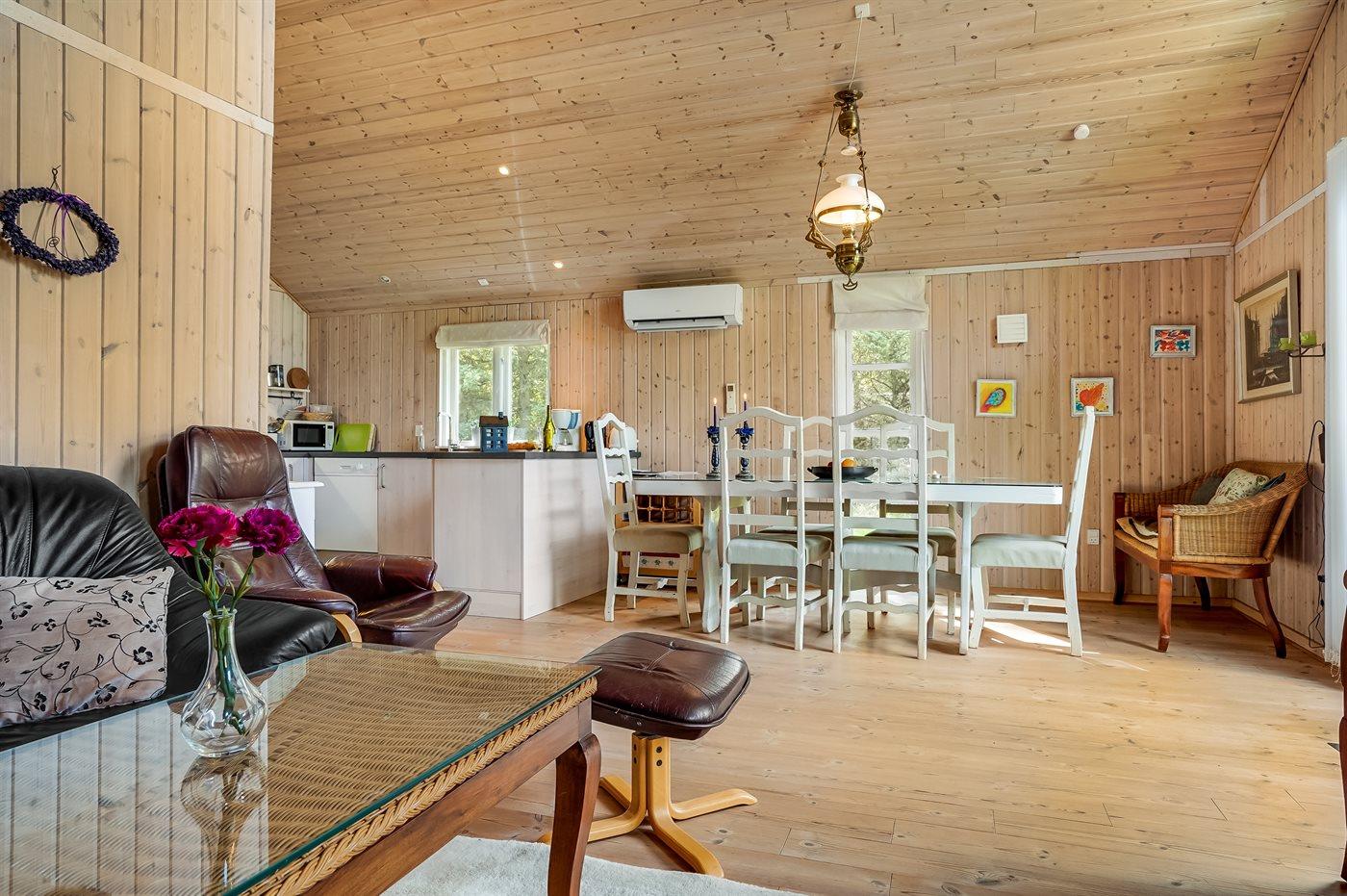 Sommerhus beliggende i naturskønne omgivelser, på en lukket vej, i et område som byder på gode muligheder for vandreture. Huset er indrettet med hems, hvor der findes 2 sovemuligheder.