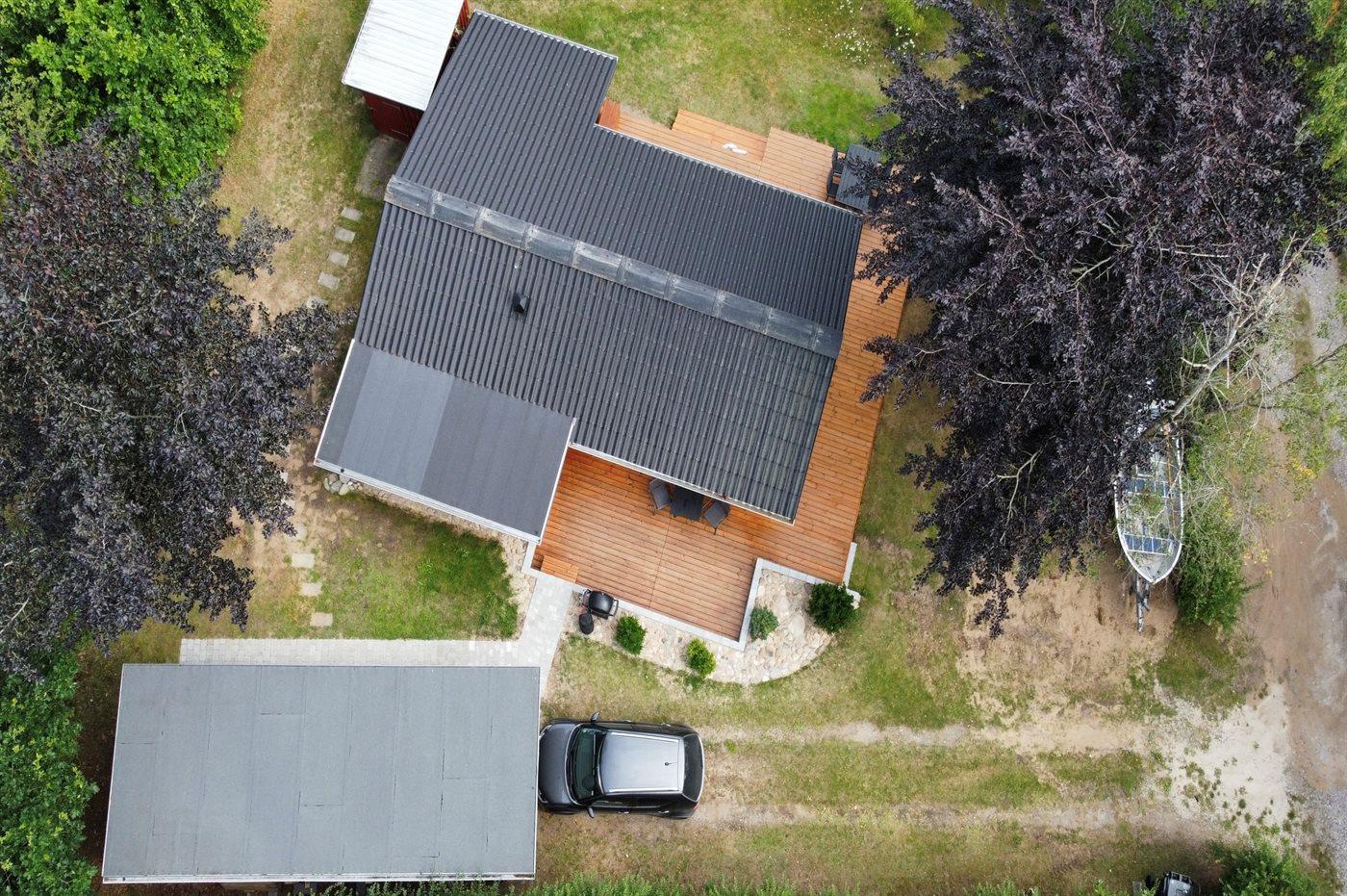 Ferieboligen er beliggende på en 1300 m² stor naturgrund. Der er 7000 m til havet. Nærmeste forretning er beliggende i en afstand af 3000 m. Til ferieboligen hører åbent terrasseareal. Gynge. Bålsted. Shelter. Parkering ved ferieboligen.