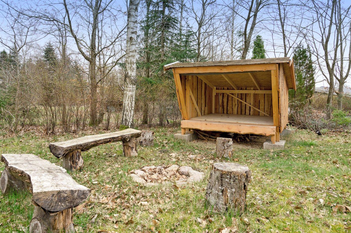 Udendørs vil I finde en dejlig stor terrasse, der tilbyder gode læmuligheder og plads til afslapning. Om aftenen kan I samles omkring bålstedet, der er omgivet af et praktisk shelter, hvor I kan lave mad og nyde hinandens selskab under stjernerne.