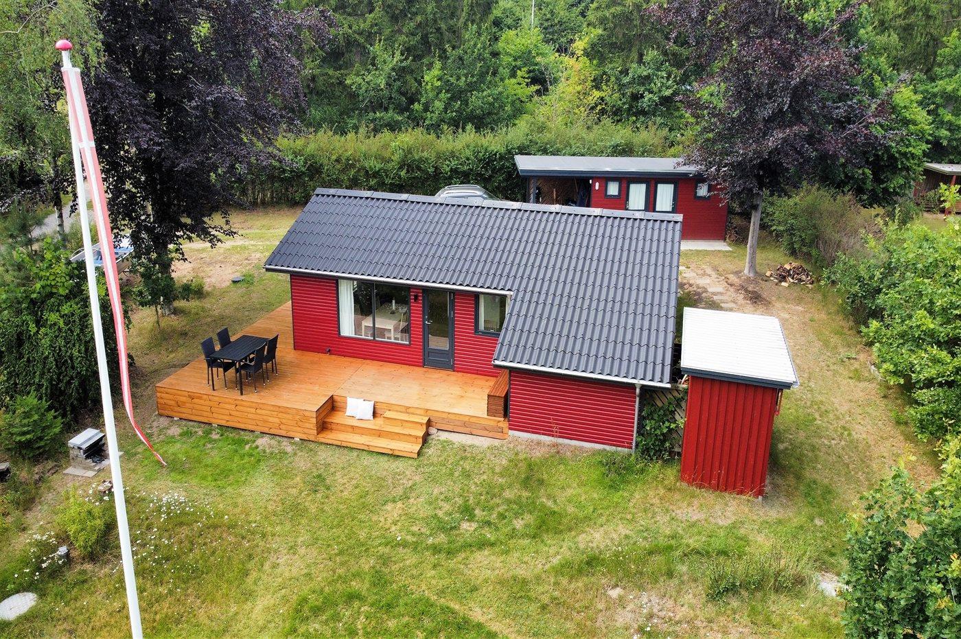 Charmerende sommerhus med stor terrasse og bålsted