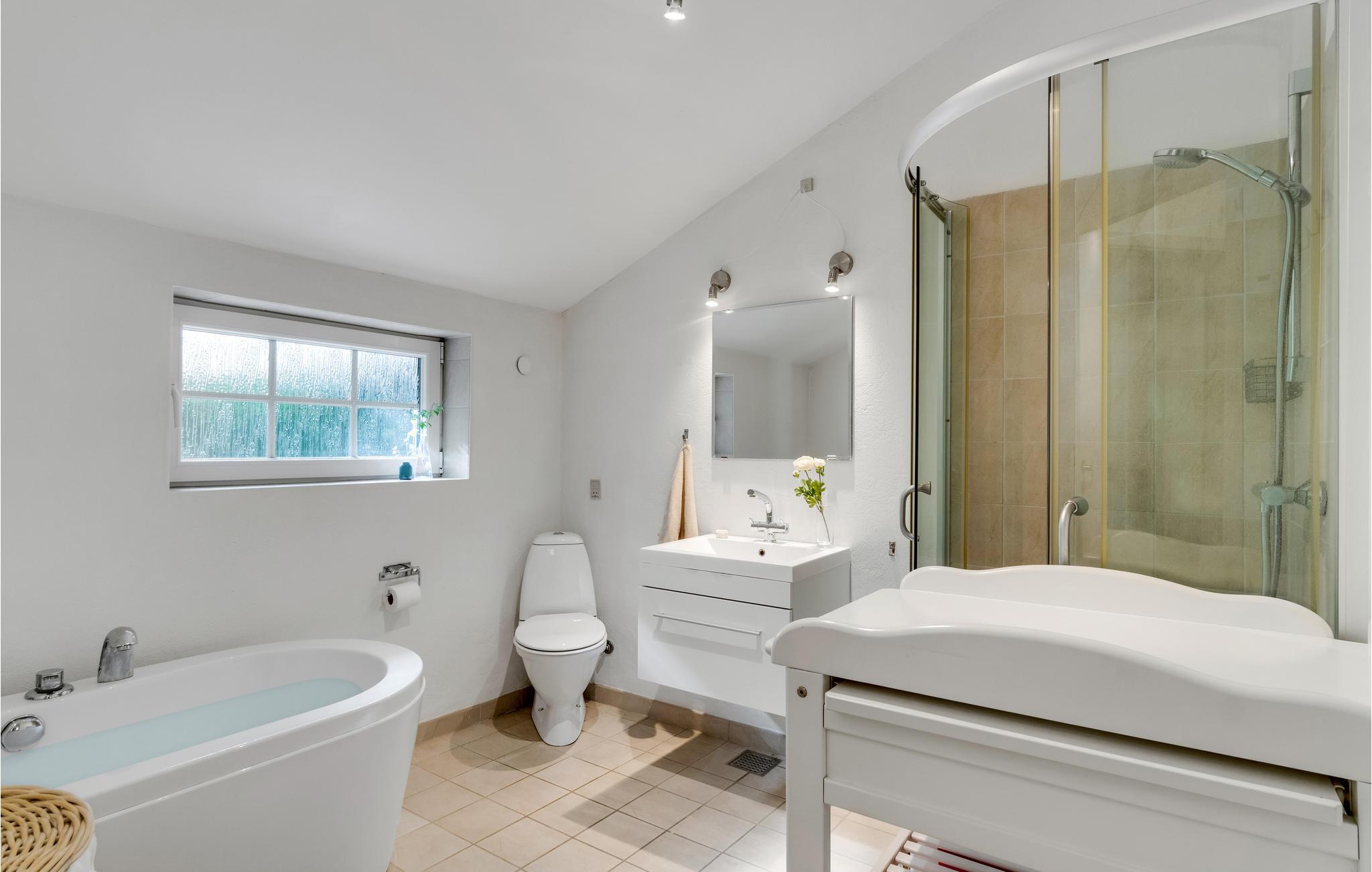 Badeværelse (nr. 1) - WC. Varmt og koldt vand. Bruser og badekar