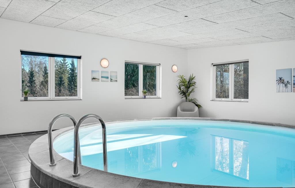 Nyere sommerhus i Thorsager med stor indendørs swimmingpool og gode terrasser for afslapning og leg.