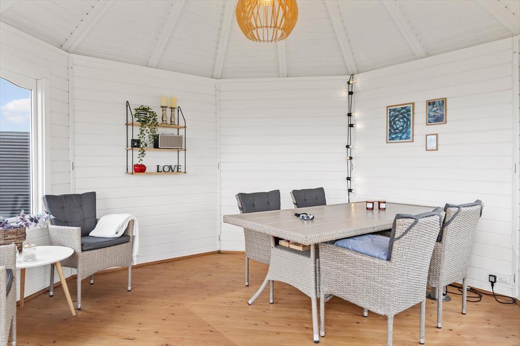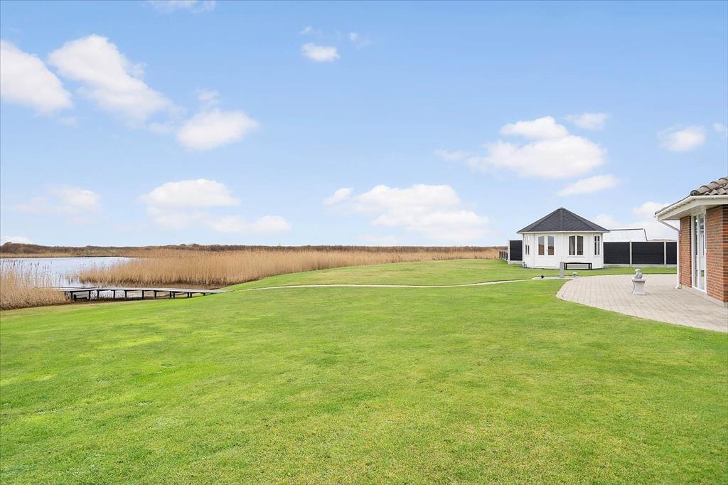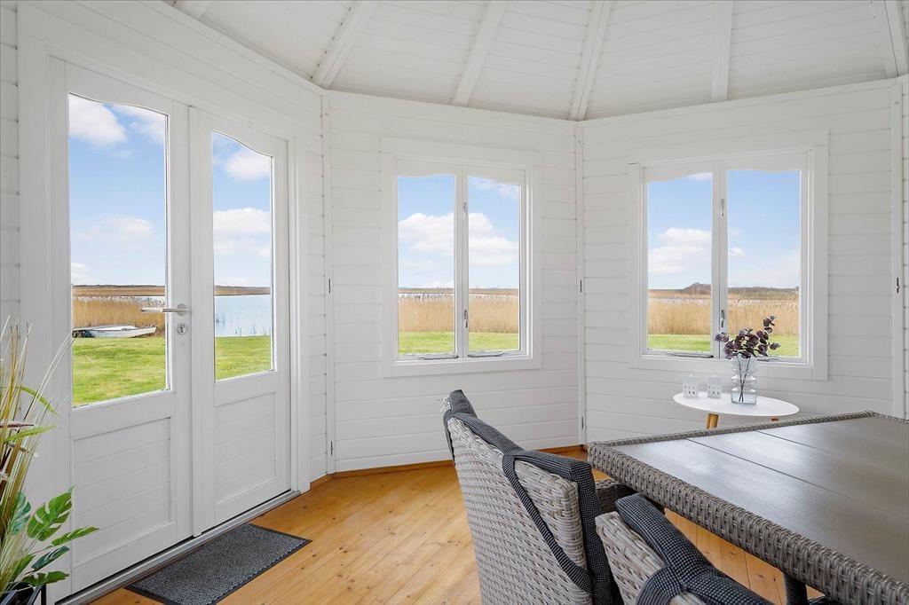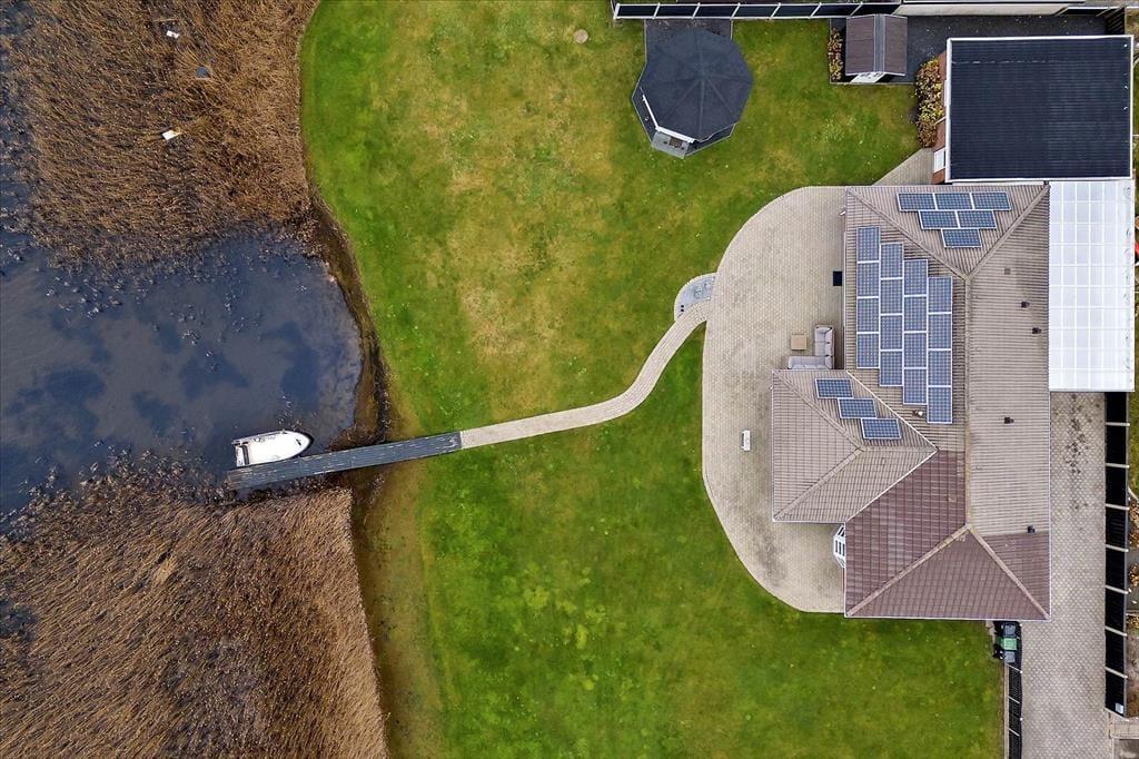 Sommerhuset ligger helt ud til vandet og byder på en stor, sydvendt terrasse, hvor solen kan nydes det meste af dagen. Her kan I læne jer tilbage i havemøblerne og lade blikket glide ud over fjorden, mens I nyder feriens rolige tempo. Haven går næsten i ét med fjorden, og fra badebroen kan I dyppe tæerne i vandet eller tage jeres paddleboard med ud på en rolig tur. Vil I forlænge de lune sommeraftener, kan I slå jer ned i pavillonen og fortsætte hyggen med et glas vin eller en kop kaffe, mens solen går ned over fjorden. Ved huset finder I også en carport, hvor bilen kan holde i læ, samt en lille siddeplads i indkørslen, hvor I kan nyde de rolige omgivelser.