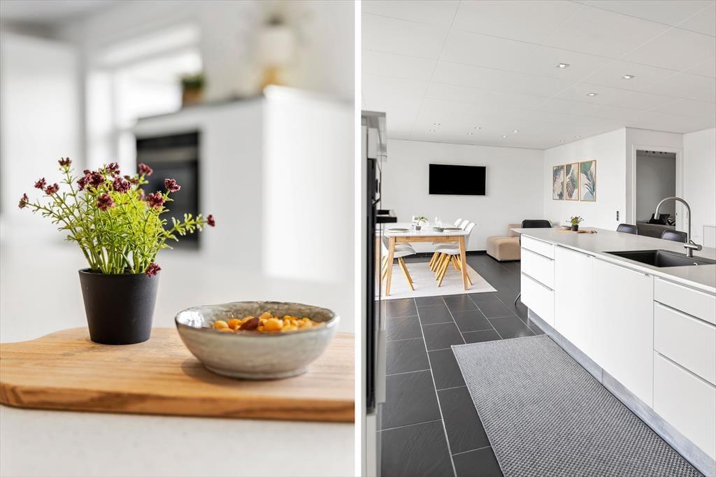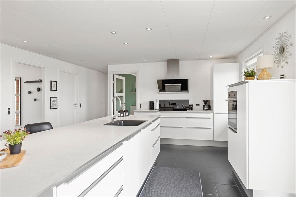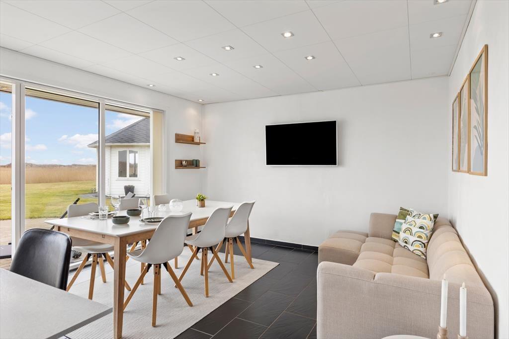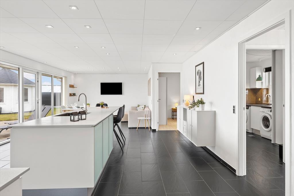 Træd indenfor i dette dejlige sommerhus i Thorsminde, hvor den smukke fjordudsigt følger jer gennem store dele af huset. Fra både køkkenet, stuen og det ene soveværelse kan I nyde udsigten over fjorden – et syn man aldrig bliver træt af. Den store stue indbyder til hyggelige stunder med masser af plads til både store og små, hvad enten dagen står på afslapning, leg eller fælles hygge. Husets køkkenalrum er det naturlige samlingspunkt, hvor I kan være sammen om madlavningen, spille spil ved bordet eller slappe af foran TV’et efter en oplevelsesrig dag.