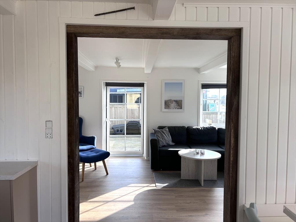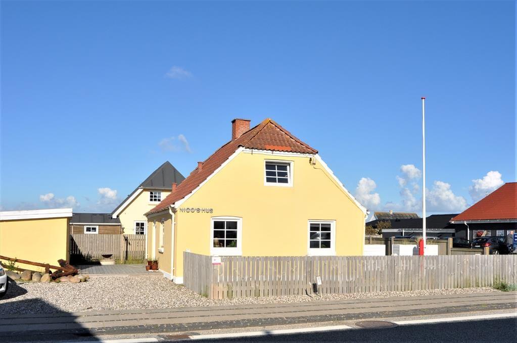 Huset har en stor, ugeneret træterrasse, hvor I kan nyde et glas vin, et måltid eller bare slappe af i solen. Fra huset er der kun få skridt til både Vesterhavet og Nissum Fjord. Den brede strand og de høje klitter strækker sig så langt øjet rækker og inviterer til afslapning, lange gåture eller en forfriskende dukkert i havet. Her kan I virkelig nyde den friske havluft og de smukke naturomgivelser året rundt.