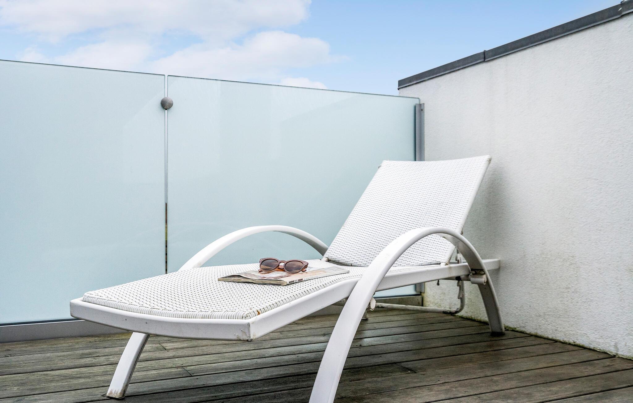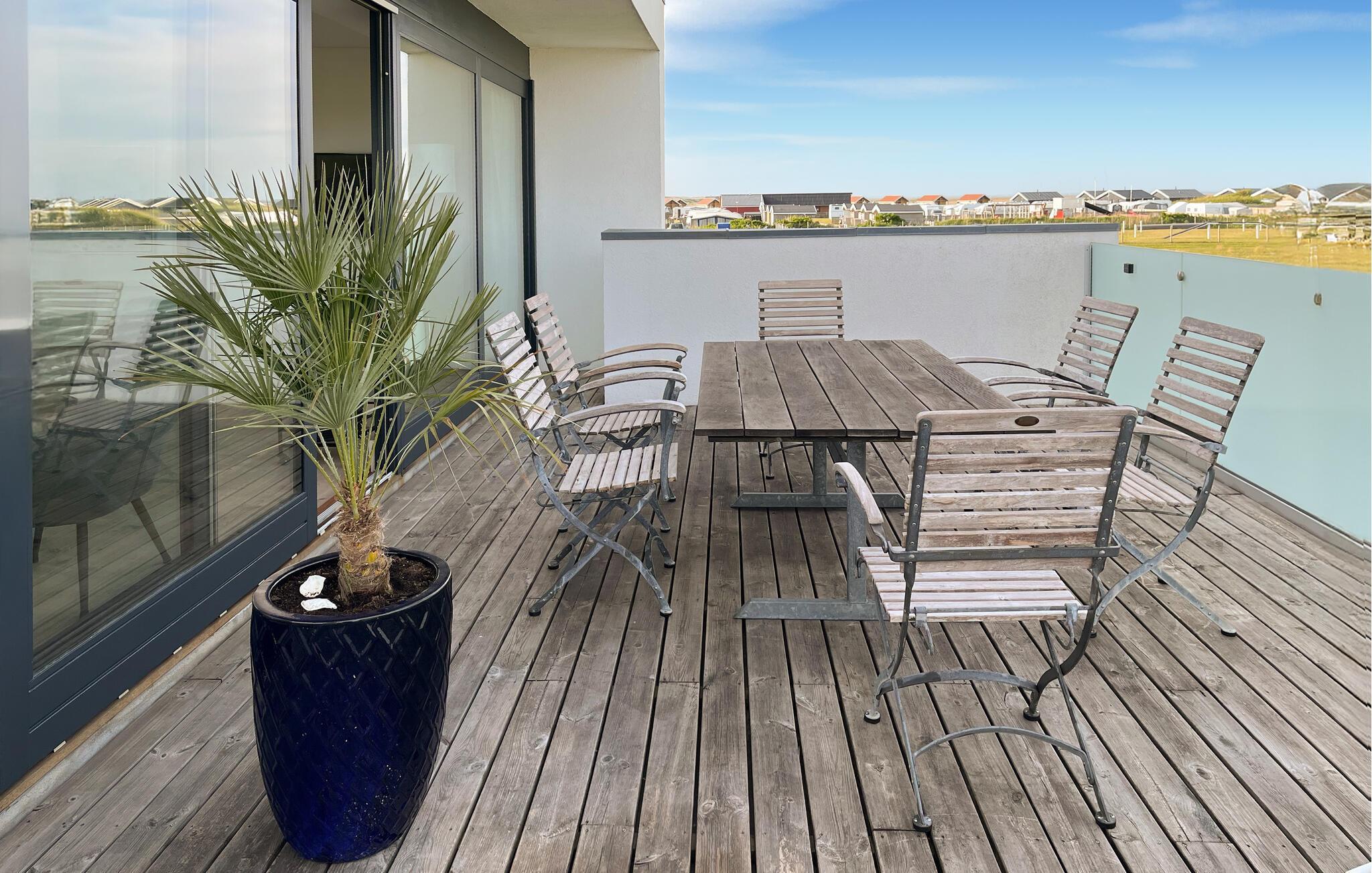 Det udvendige område er virkelig skønt. Den rummelige tagterrasse byder på en betagende udsigt over kystlandskabet og lægger op til hyggelige aftener med måltider i den friske luft.