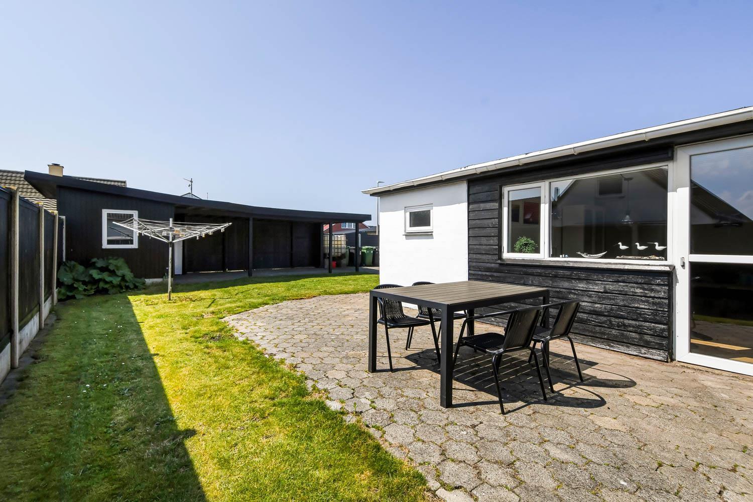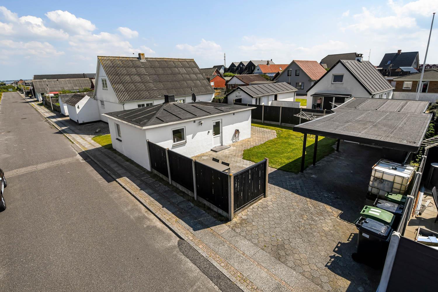 Huset er beliggende på en 300 m2 naturgrund tæt på indkøb og Vesterhavet. Der er en terrasse med havemøbler, grill og der er desuden en carport til bilen. Der er en skøn udsigt til klitterne ved Vesterhavet. Thorsminde er en hyggelig fiskerby, hvor der er gode muligheder for lystfiskeri både ved slusen og ude fra stranden. Et godt hus til lystfiskere eller et par som gerne vil bo i Thorsminde by og tæt på Vesterhavet.