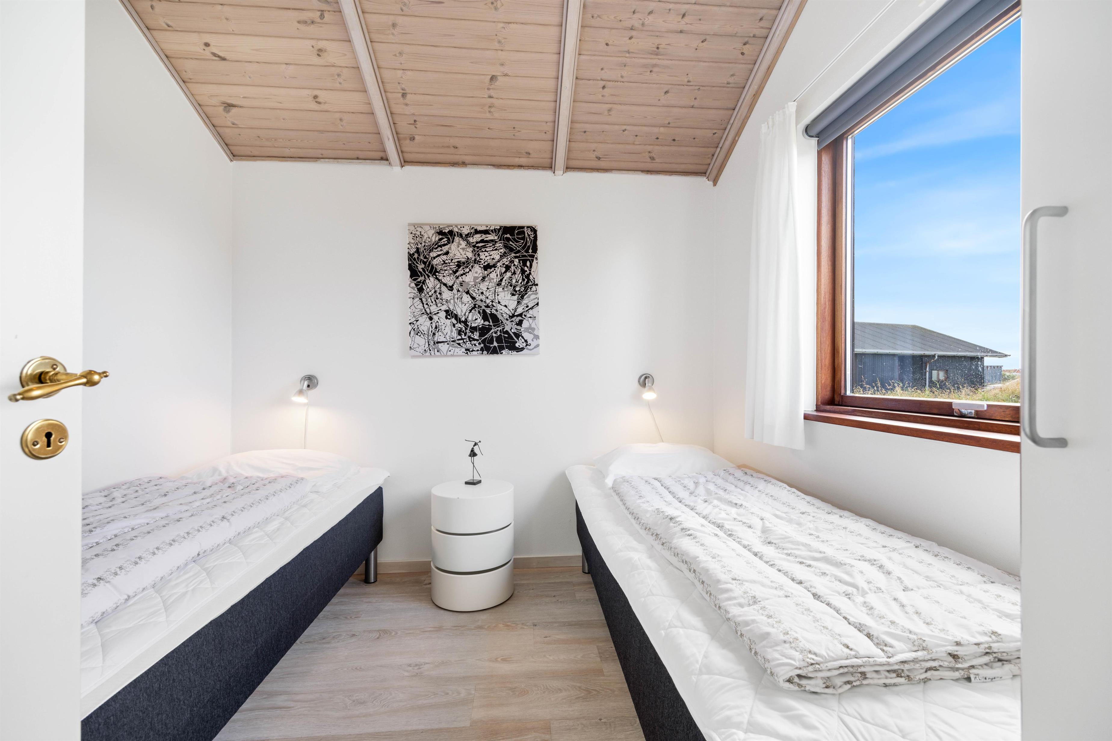 Kun 500 meter fra sommerhuset finder I den kilometerlange sandstrand og det brusende Vesterhav – en naturoplevelse, der helt sikkert er et besøg værd. På varme dage er det oplagt at tage en dukkert i det friske havvand eller medbringe et håndklæde og nyde solen på den brede strand.