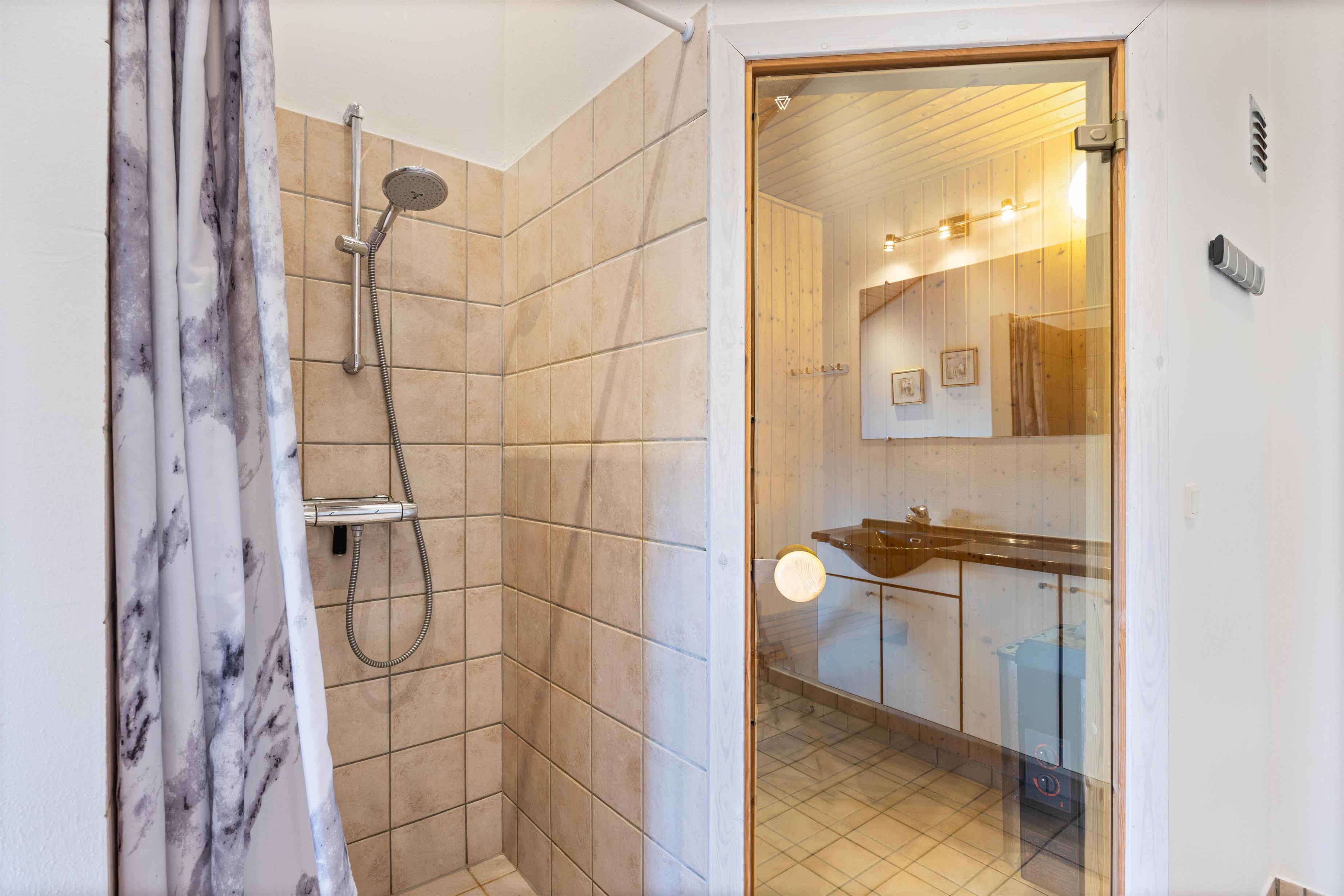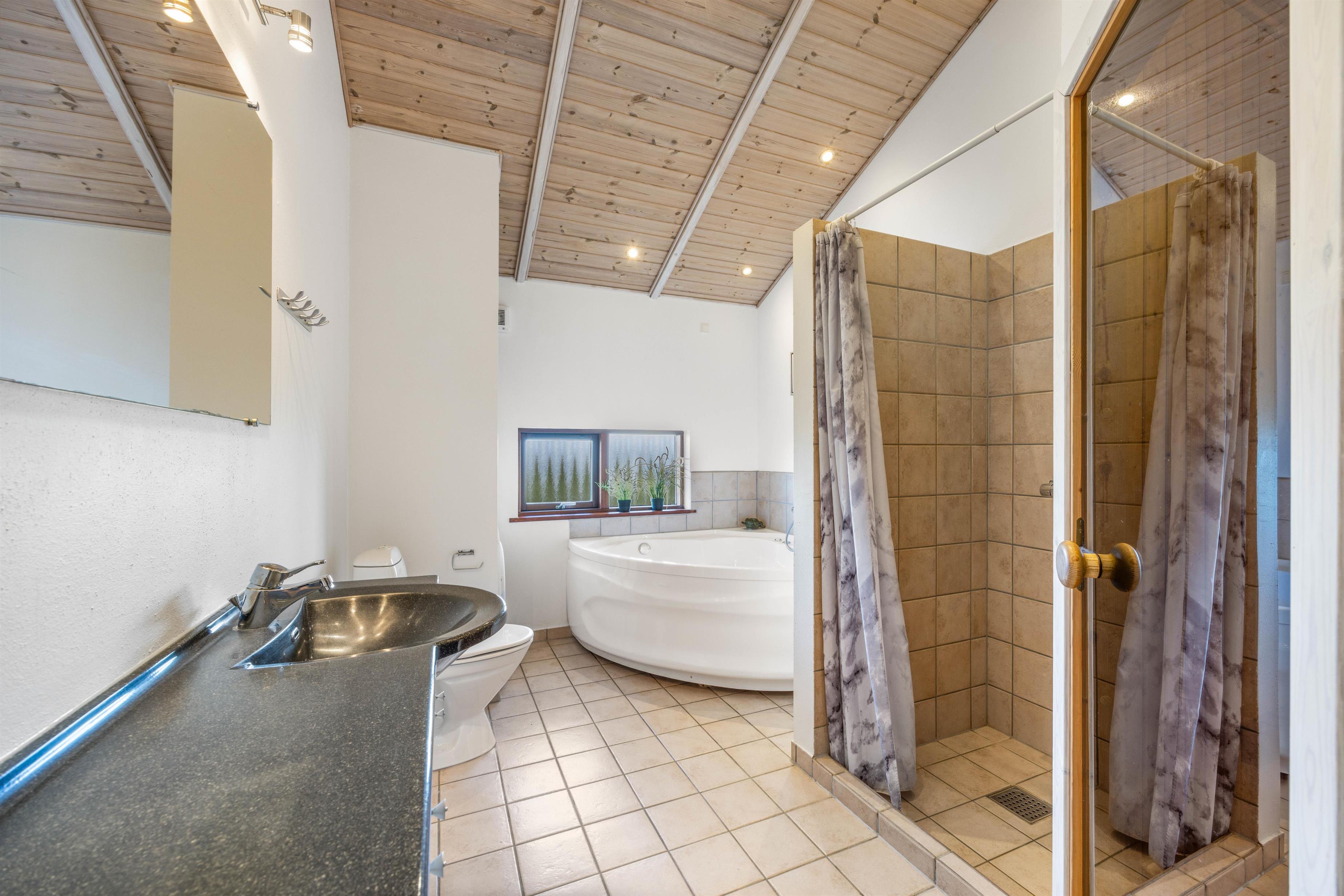 Ydermere finder I 1 gæstetoilet og 1 badeværelse, hvoraf badeværelset indeholder spa og sauna, så her har i mulighed for at trække jer tilbage, nyde varmen, slappe helt af og nyde i har ferie. Det er også ude på badeværelset I finder en vaskemaskine og tørretumbler, så I har mulighed for at friske jeres håndklæder eller tøj op i løbet af jeres ferie. Både gæstetoilettet og badeværelset har gulvvarme, så her skal I ikke bekymre jer om kolde tæer.