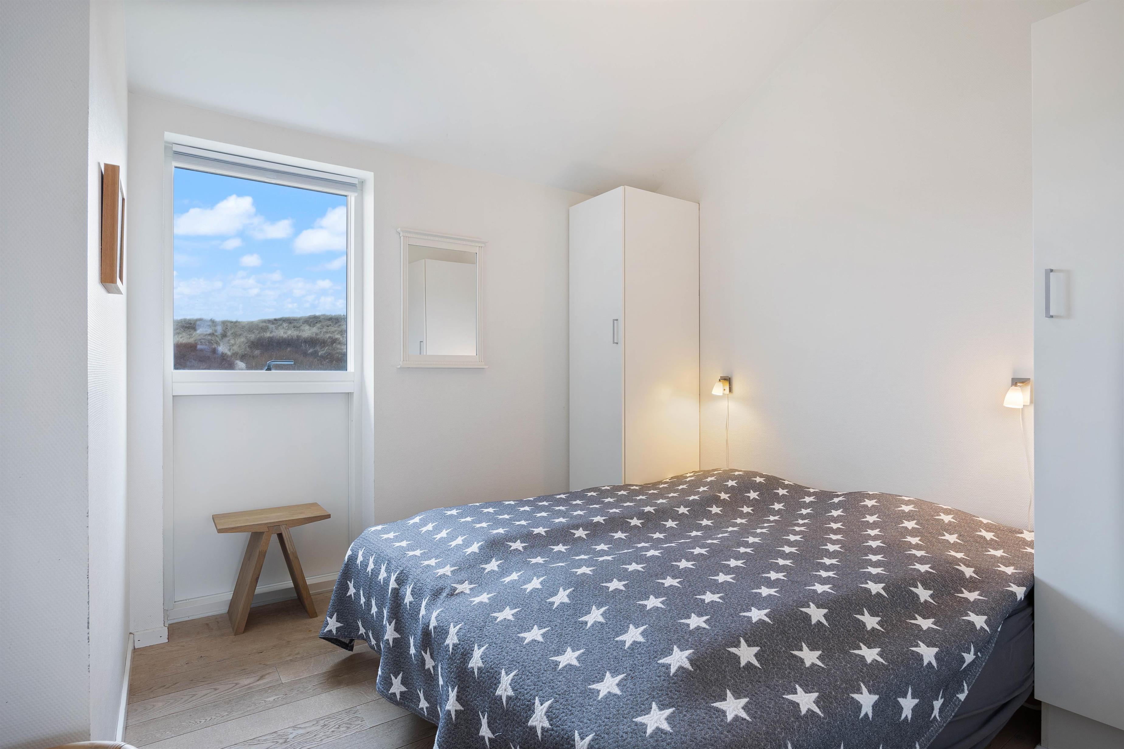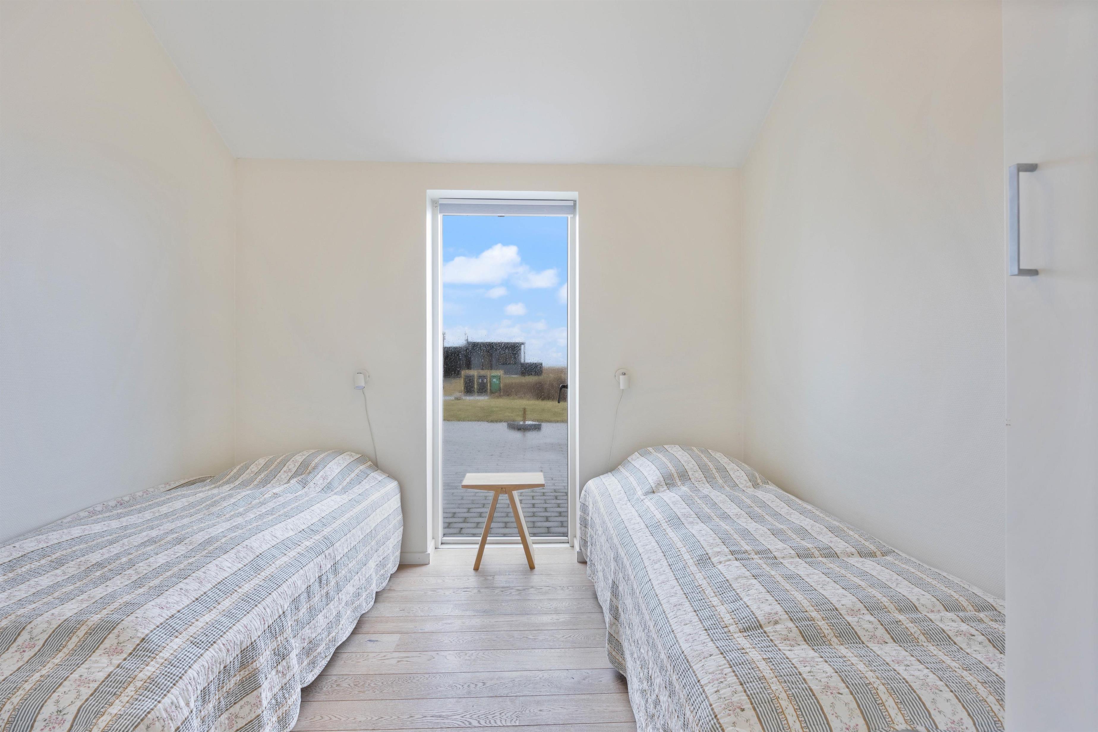 Sommerhuset har 4 soverum, heraf 3 med dobbeltsenge og 1 med enkeltsenge. Begge badeværelser har gulvvarme og på det store badeværelse er der både spabad og sauna, så I rigtigt kan få slappet af på ferien og få ladt batterierne op, mens I nyder lidt wellness.
