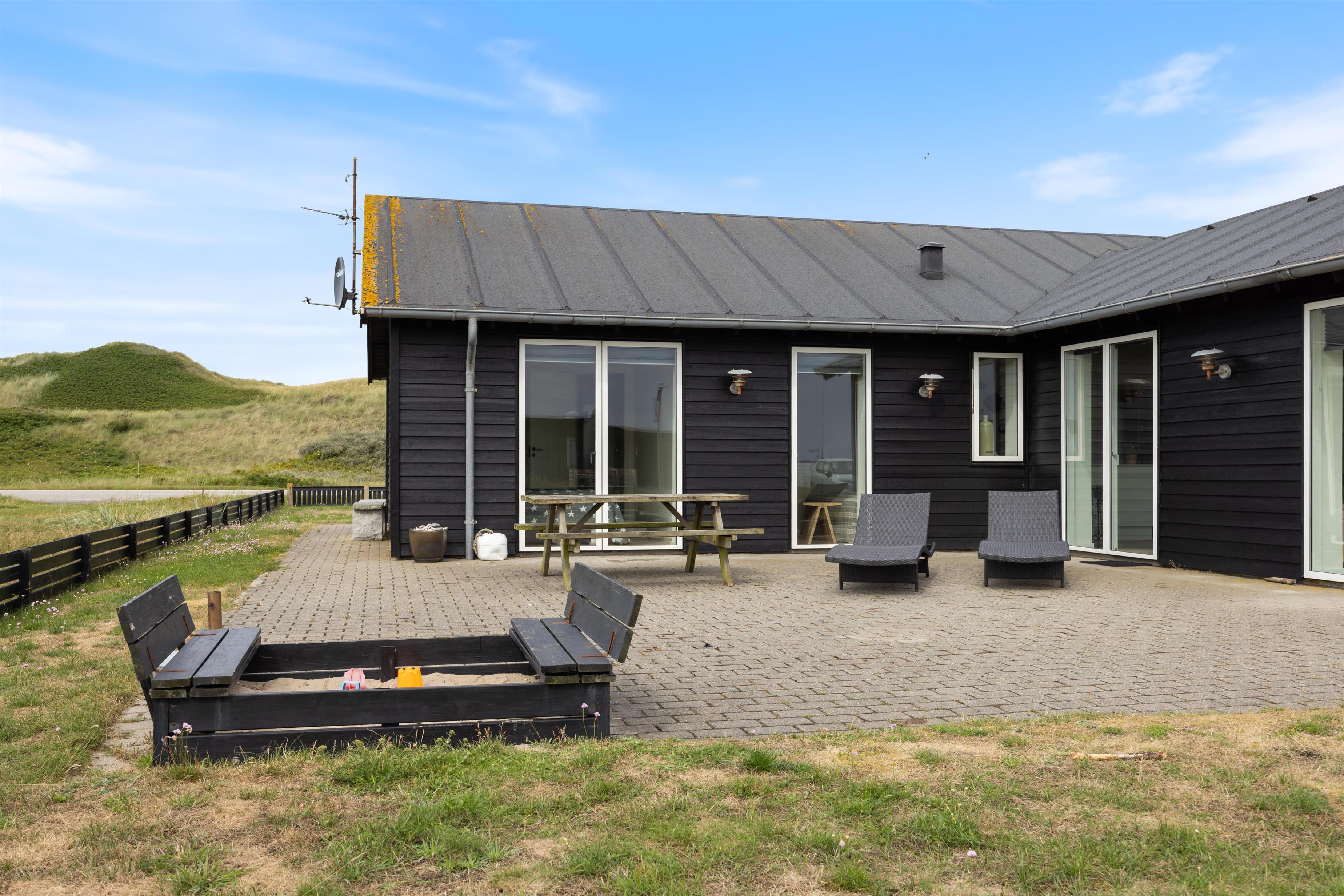 Dette hundevenlige sommerhus har en indhegnet grund, så familiens firbenede ven frit kan bevæge sig rundt uden bekymringer. Imens kan du selv læne dig tilbage med et glas vin og nyde den smukke udsigt og den friske vestjyske luft.