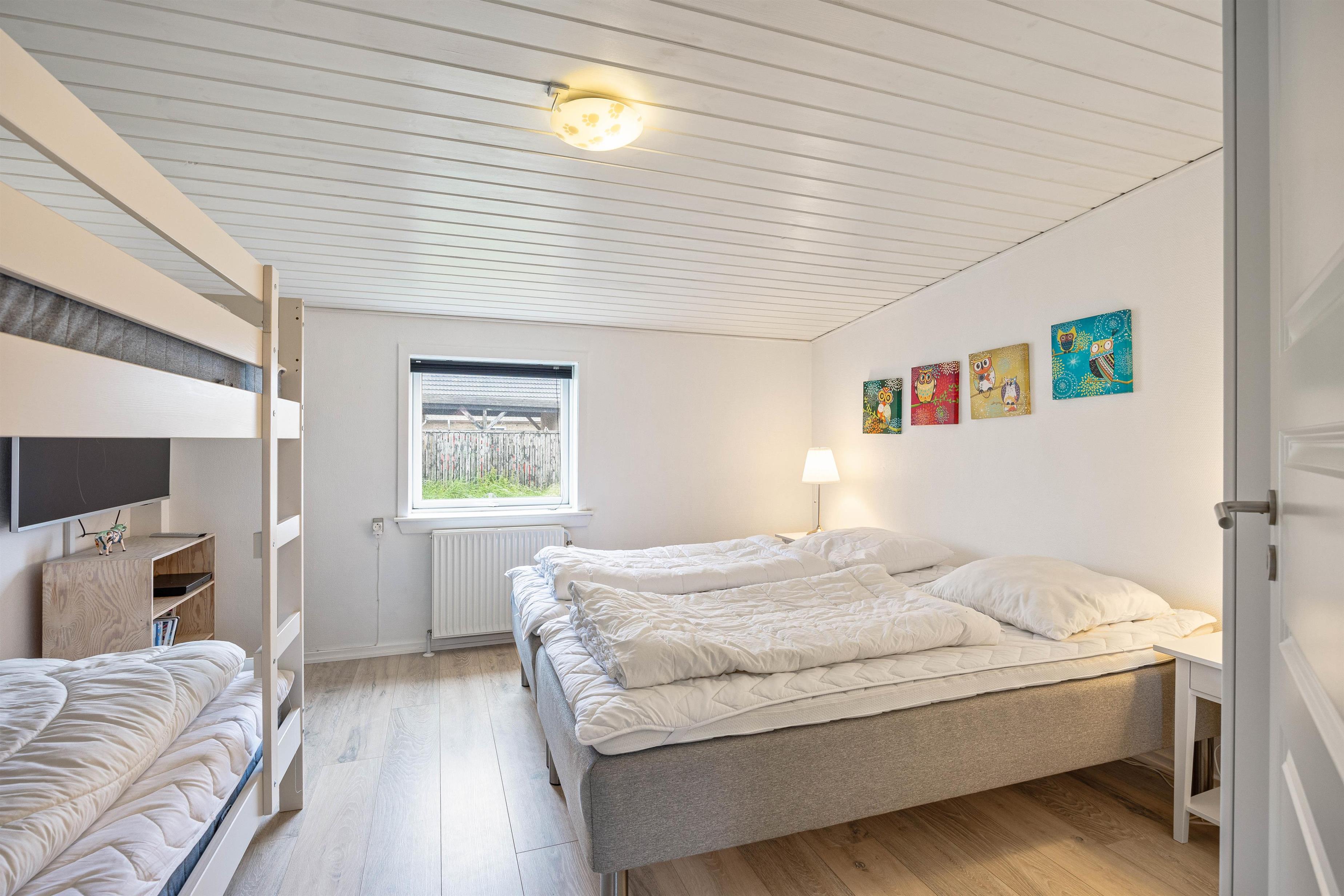 Så snart I træder ind i det 135 kvadratmeter store feriehus, vil I straks føle jer hjemme og have det godt. Her er plads til 8 gæster og 2 hunde, der om natten kan fordele sig i feriehusets 3 gode soveværelser. 2 af soveværelserne er indrettet med en dobbeltseng, og det sidste soveværelse har både 1 dobbeltseng og 1 køjeseng. I feriehuset finder I også et dejligt lyst badeværelse med gulvvarme, så I undgår kolde fødder.