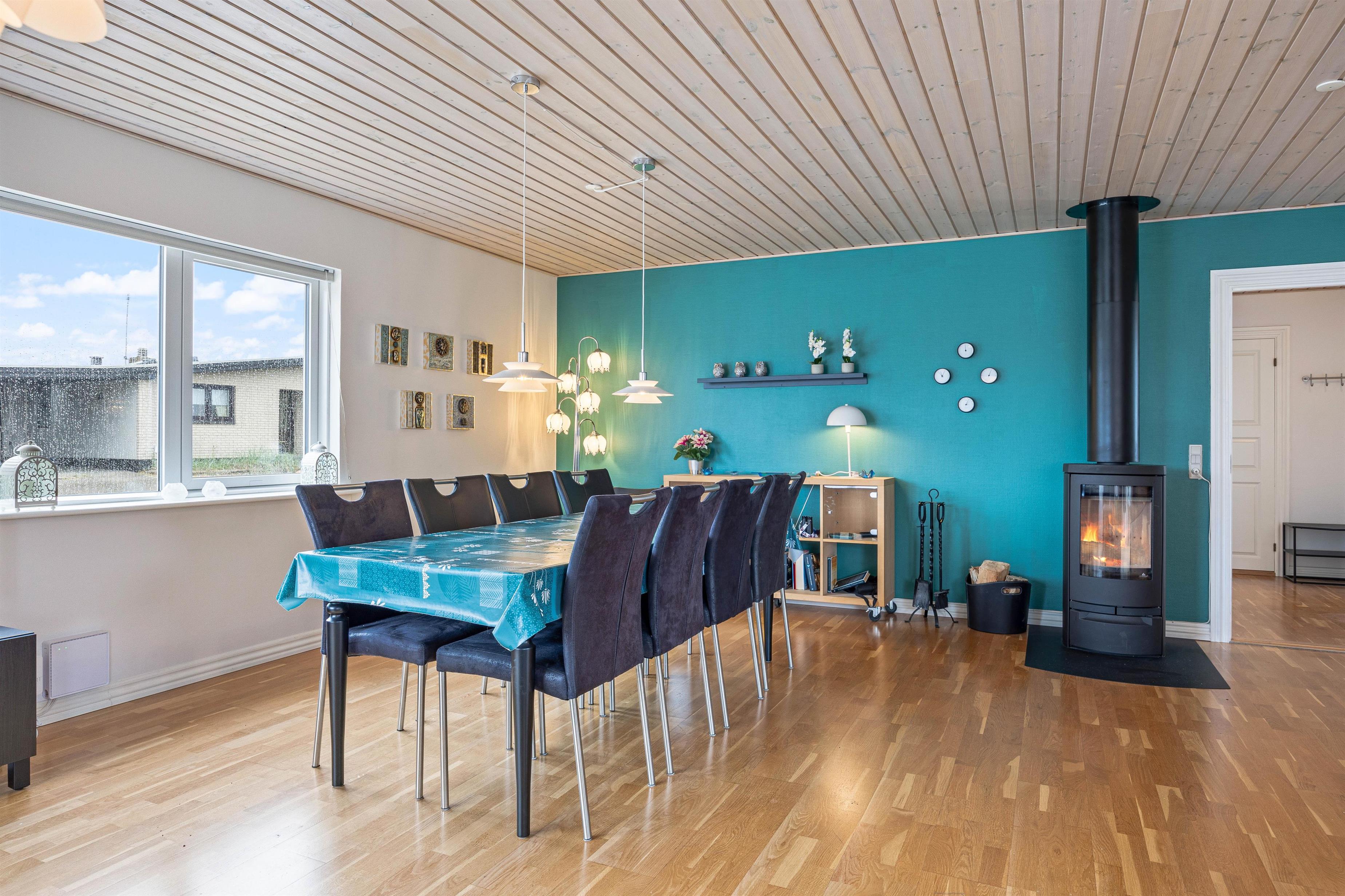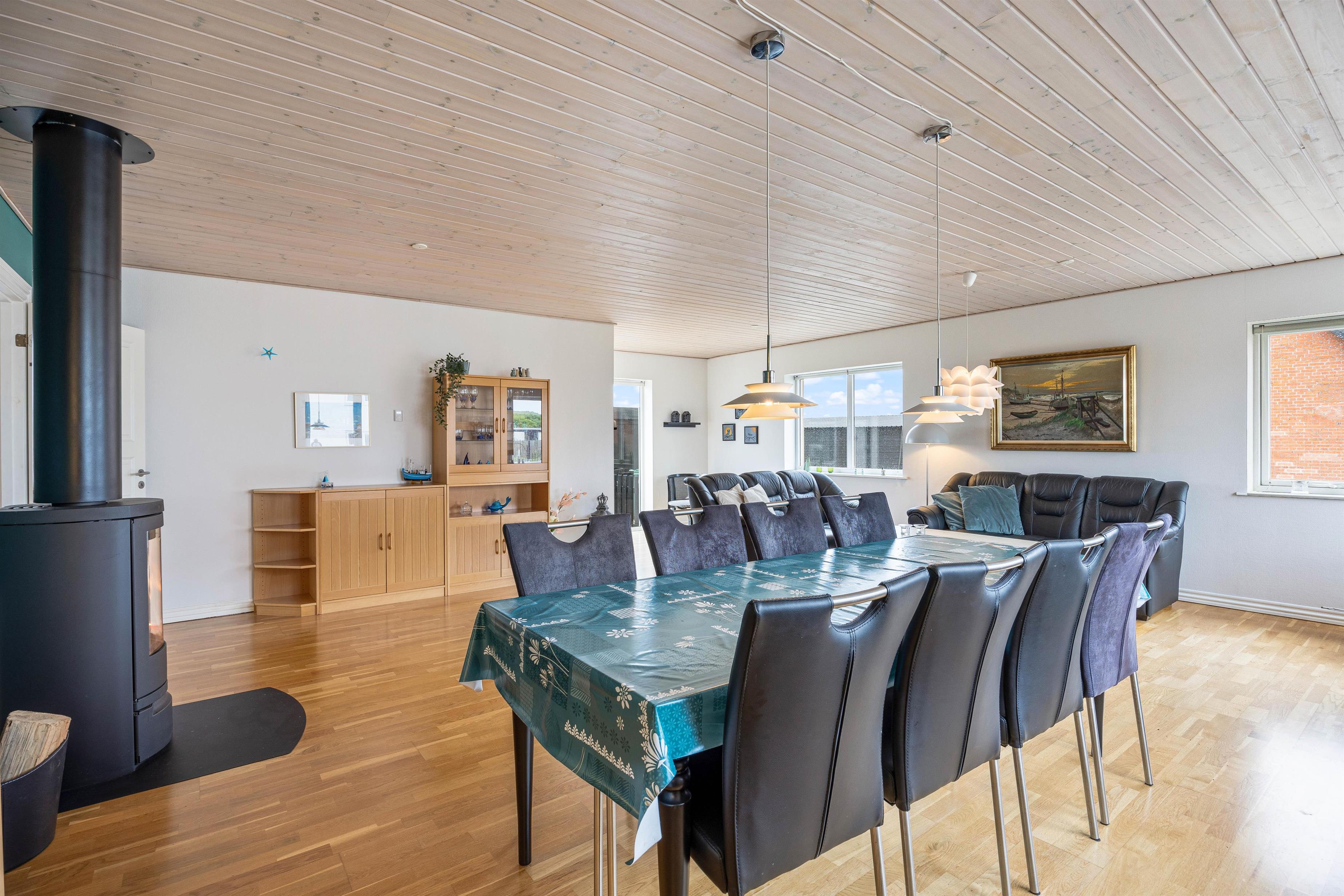 Feriehusets hjerte er spisestuen, hvor hele jeres familie har mulighed for at samles og nyde, at I holder ferie sammen. På de kølige dage, er det oplagt at tænde op i brændeovnen og nyde varmen brede sig i hele spisestuen. Imens I hører den hyggelige knitren fra brændeovnen i baggrunden, kan I se en god film på fjernsynet eller spille et brætspil med familien ved spisebordet.