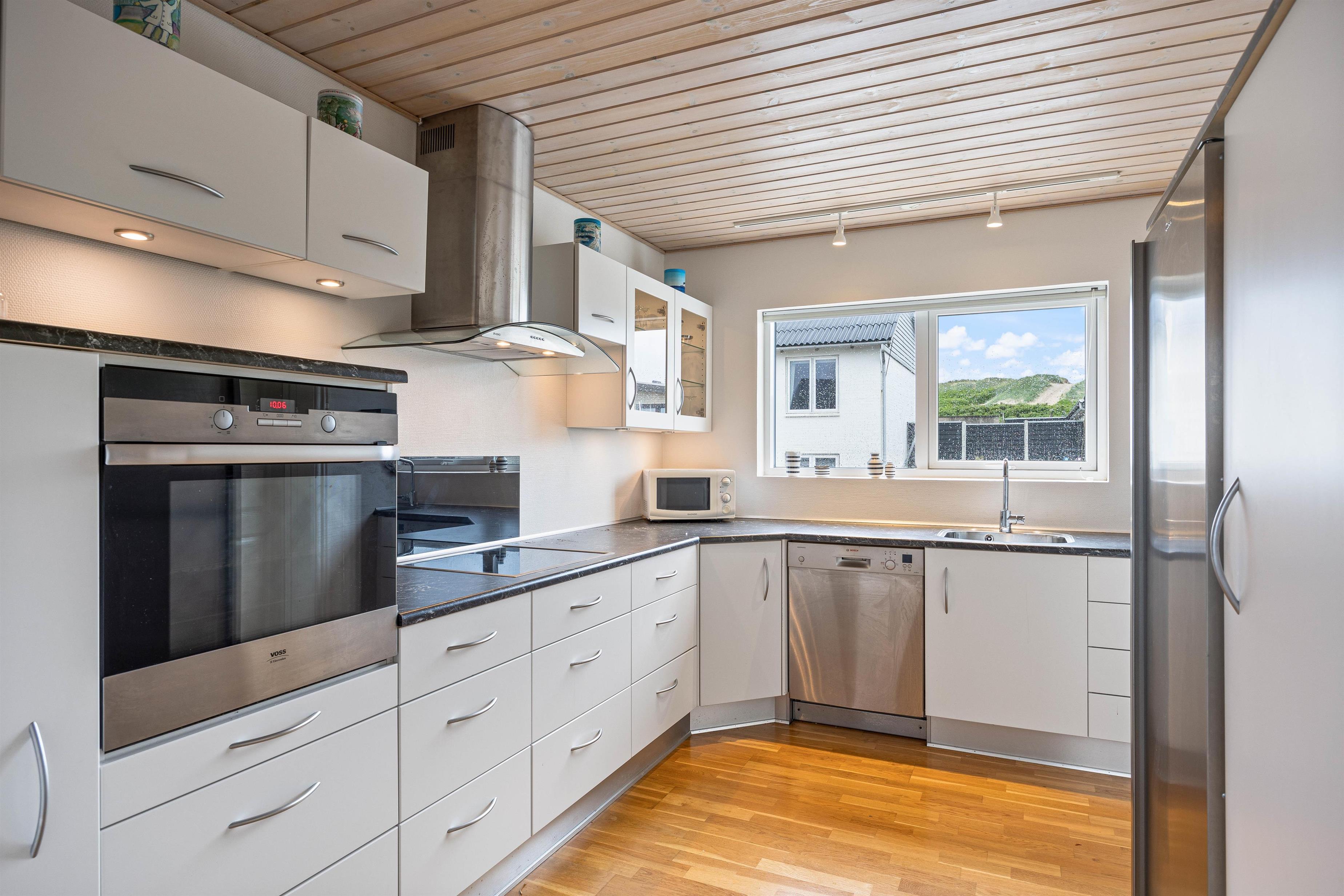 I køkkenet er der god plads til at lave lækre måltider til hele familien. I skal ikke bekymre jer om opvasken, da her er en opvaskemaskine, som klarer den for jer. Ude i gangen har I også mulighed for at bruge vaskemaskinen og tørretumbleren, så I let kan vaske tøj og håndklæder under ferien.