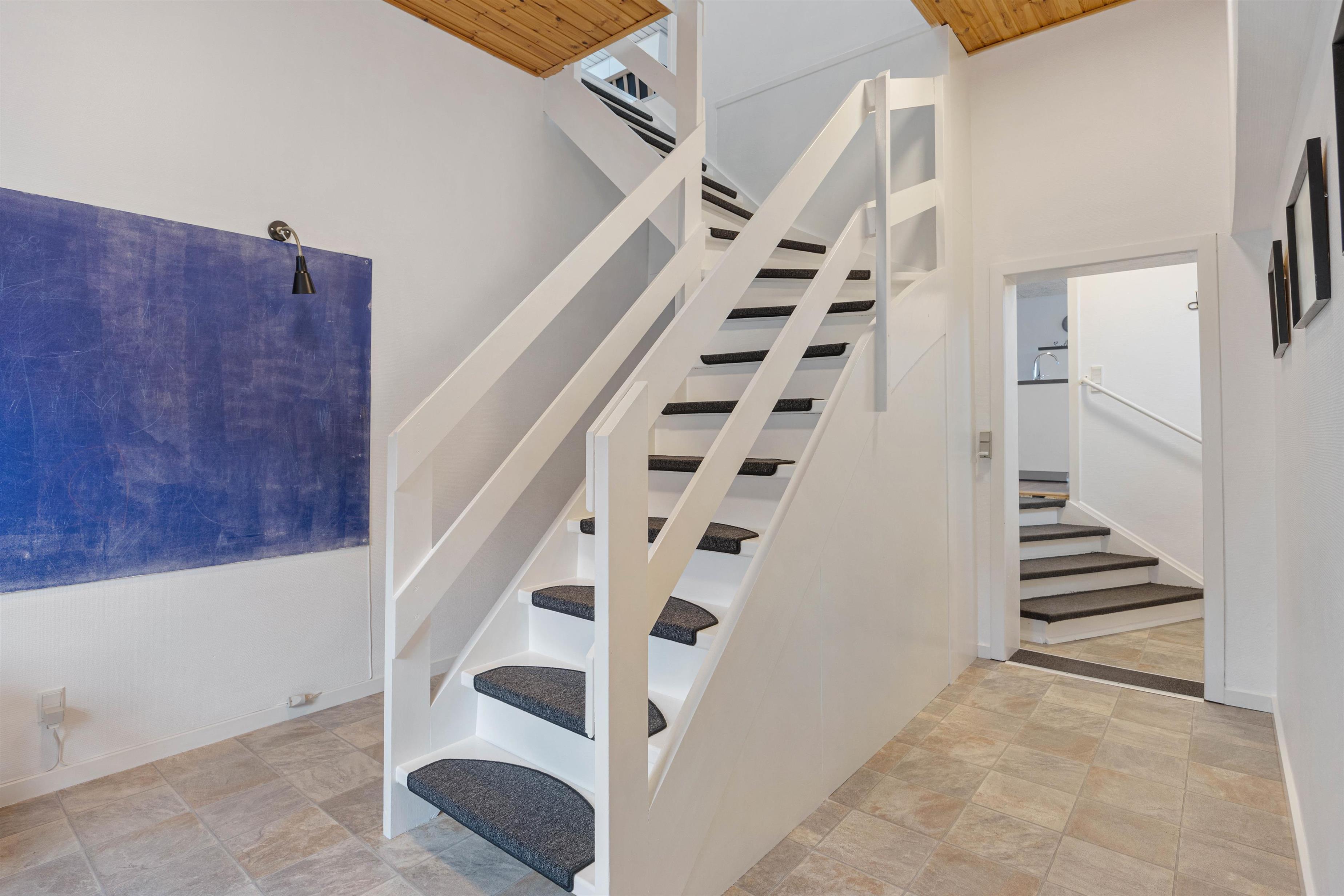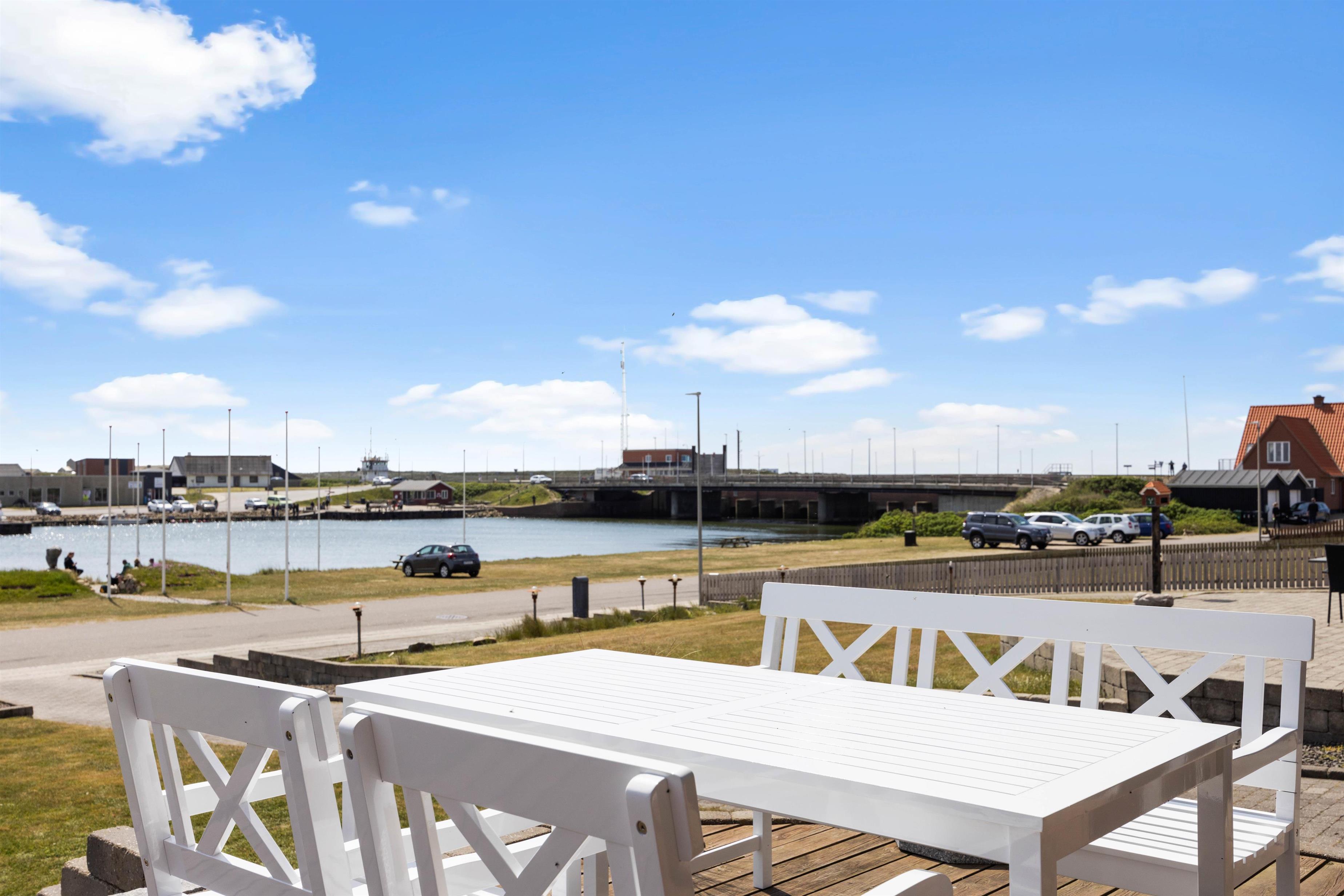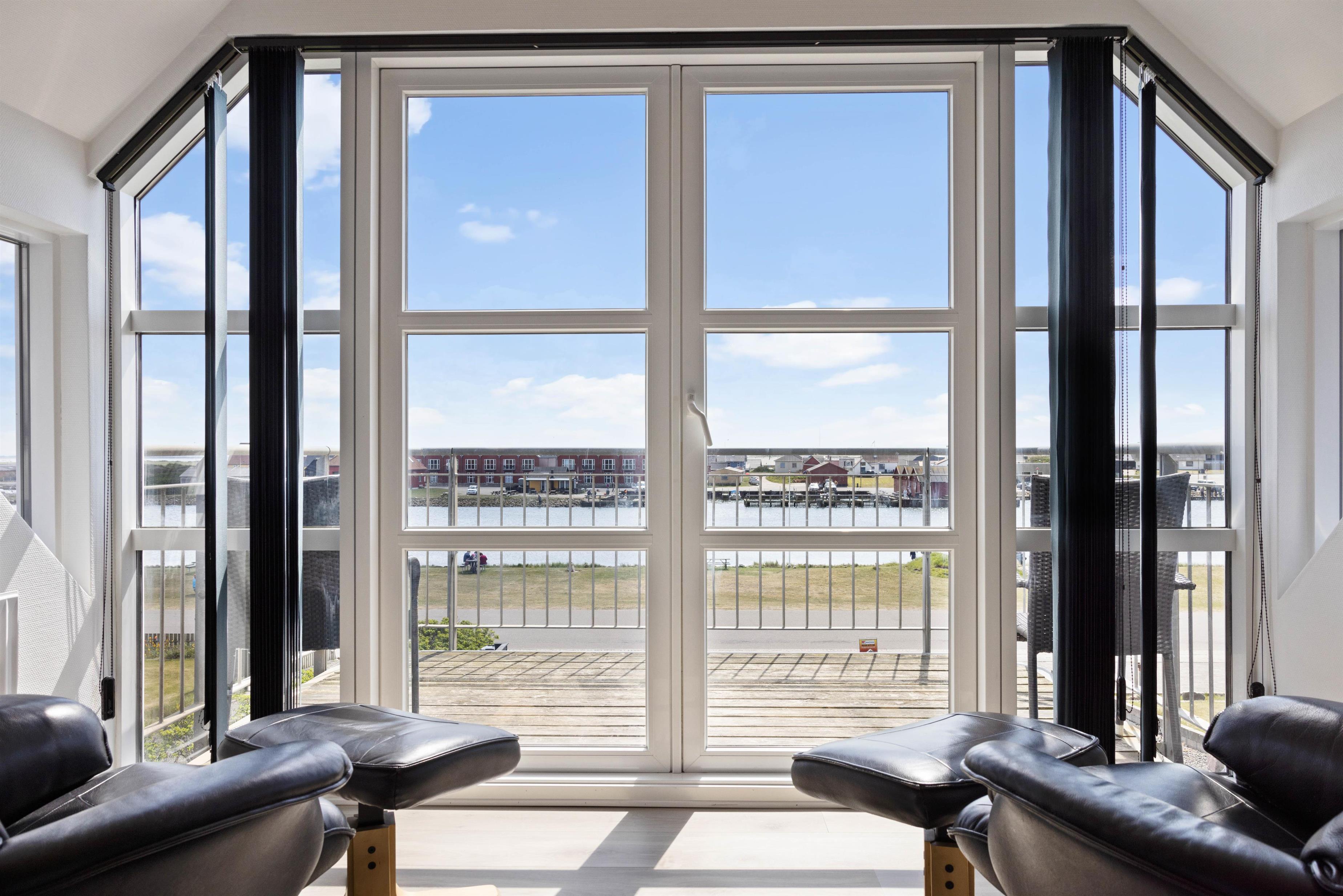Det lyse og rummelige sommerhus på Skolegade 11 danner rammen for en fantastisk ferie på Vestkysten. Sommerhusets stue og køkken ligger i forlængelse af hinanden, hvorfra nogle af jer har mulighed for at slænge jer i den store sofa eller nyde en kold drink ved kogeøen, imens andre står for madlavningen i det flotte og indbydende køkken. Fra køkkenalrummet kan I nyde den smukke panoramaudsigt ud over kanalen med de forbi sejlende både, og herfra har I yderligere direkte adgang ud til en af terrasserne.