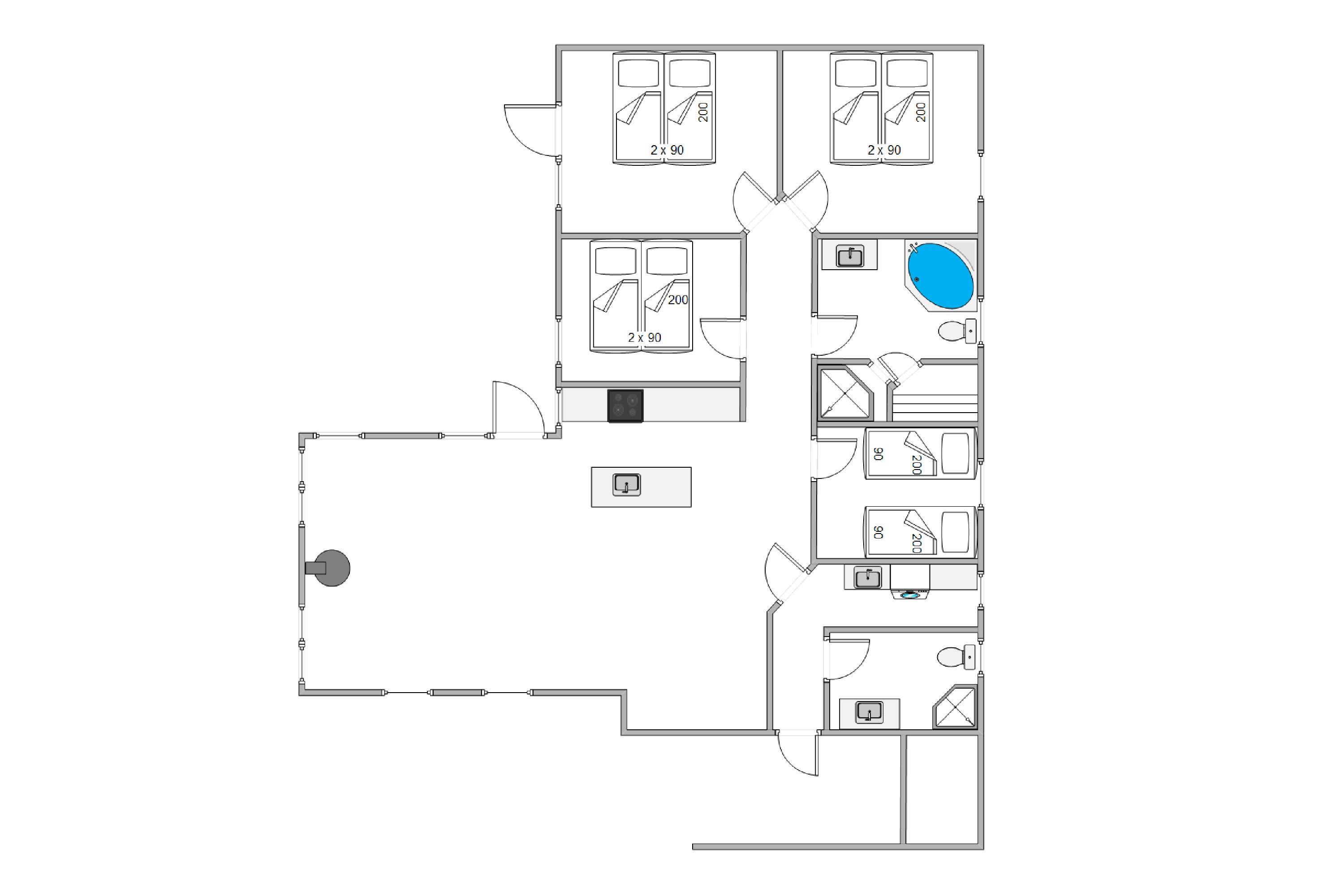 Her får I også mulighed for at slappe helt af i sommerhusets wellness-faciliteter, som blandt andet inkluderer 1 sauna og 1 lækker indendørs tømmespa. Med 2 badeværelser er der aldrig kamp om morgenrutinen, og med både vaskemaskine og tørretumbler er I godt dækket ind – uanset om I er afsted i en weekend eller i flere uger.