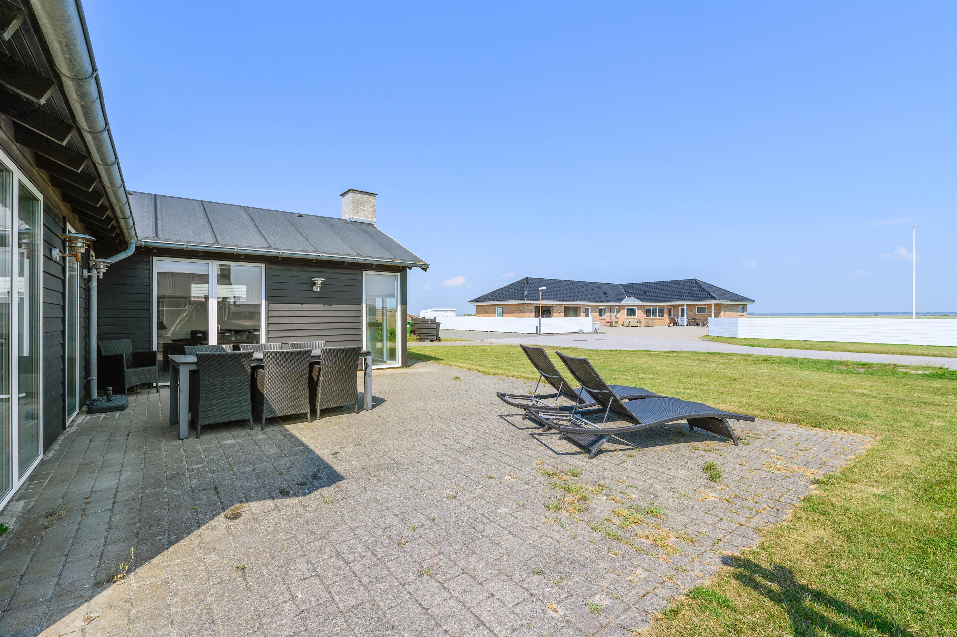 Med til feriehuset hører et fantastisk udeareal. Terrassen har både en åben og afskærmet del, og I kan til hver en tid nyde udsigten. Der er god plads til at slæbe liggestolene ud, når solen kommer frem, og der er havemøbler nok til alle. Måske griller I friskfangne fisk om aftenen og nyder en kølig drink. Mens de voksne nyder solnedgangen og børnene eller hunden leger på den store plæne.