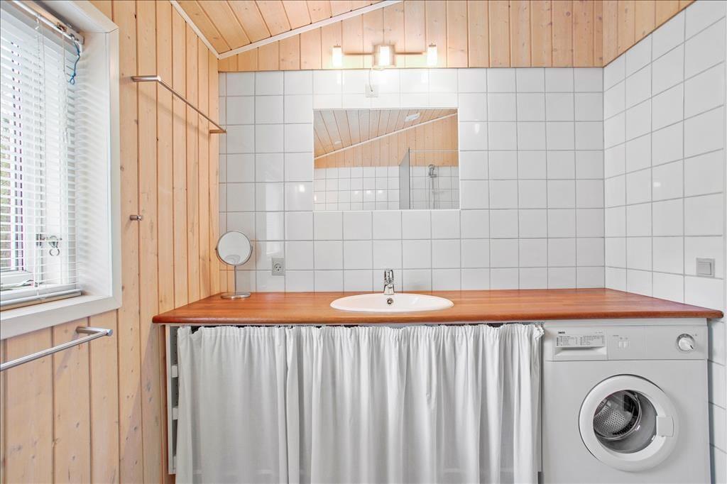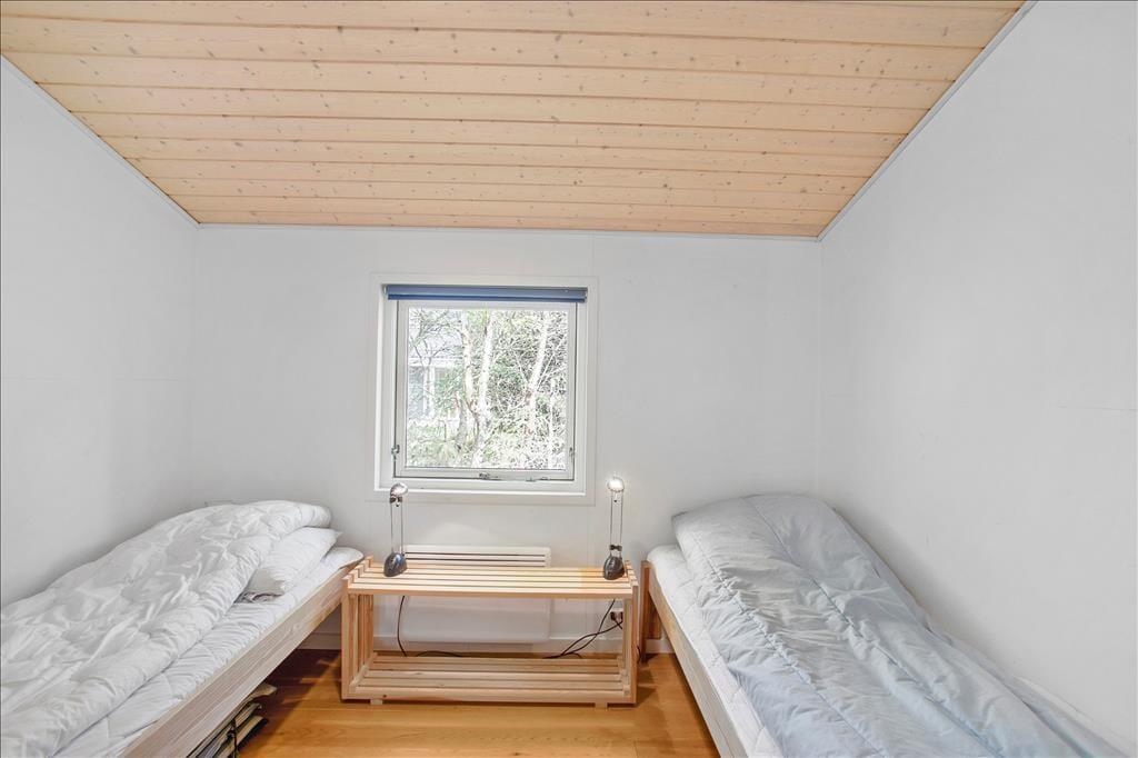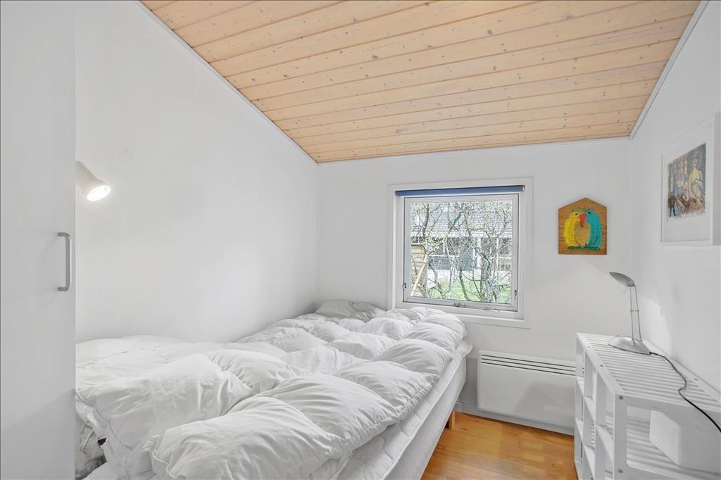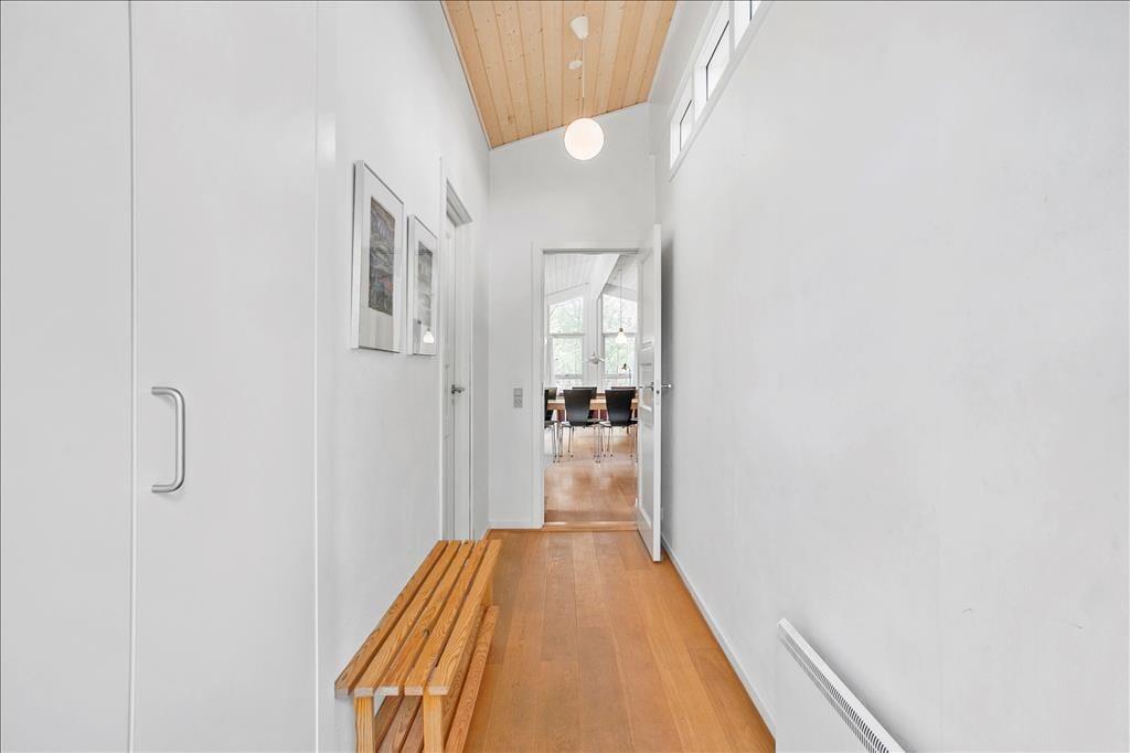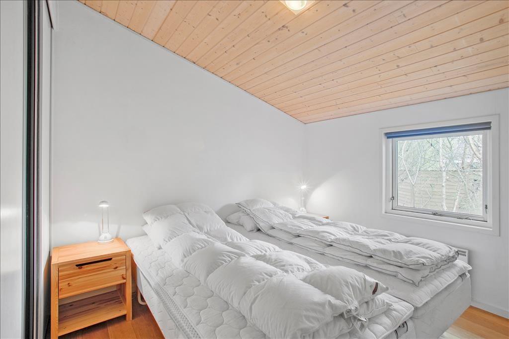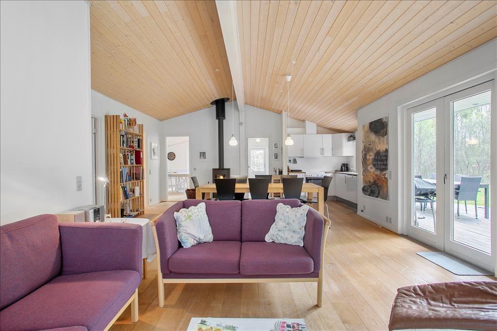Lyse trælofter, pæne gulve og hvide vægge pryder rummene og skaber en let og luftig ramme om de indendørs hyggestunder – ikke mindst i opholdsrummet, hvor opholdsstue og køkken er forenet. Her er der store vinduespartier og havedøre ud mod terrassen, og en brændeovn står klar til at sprede en passende temperatur på eventuelle kølige aftner. Husets kreative rum giver god plads til både fordybelse og leg. Så uanset om det er et spil bordtennis eller yoga, er der plads til det hele. Her er også mulighed for at slappe af med en god bog eller male de sten I har fundet på stranden, så I kan tage et minde med hjem. Den fornuftige planløsning byder for øvrigt på tre gode soveværelser og et rummeligt badeværelse med vaskemaskine og gulvvarme. Alt i alt har I 110 m2 at brede jer på, så der er med andre ord god plads til seks personer her i huset.