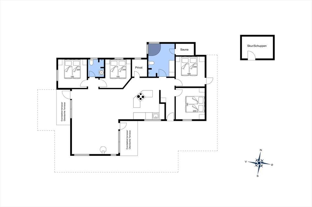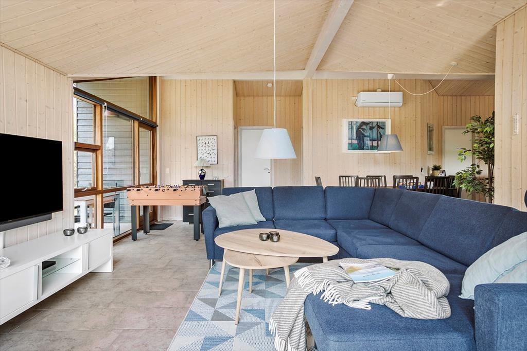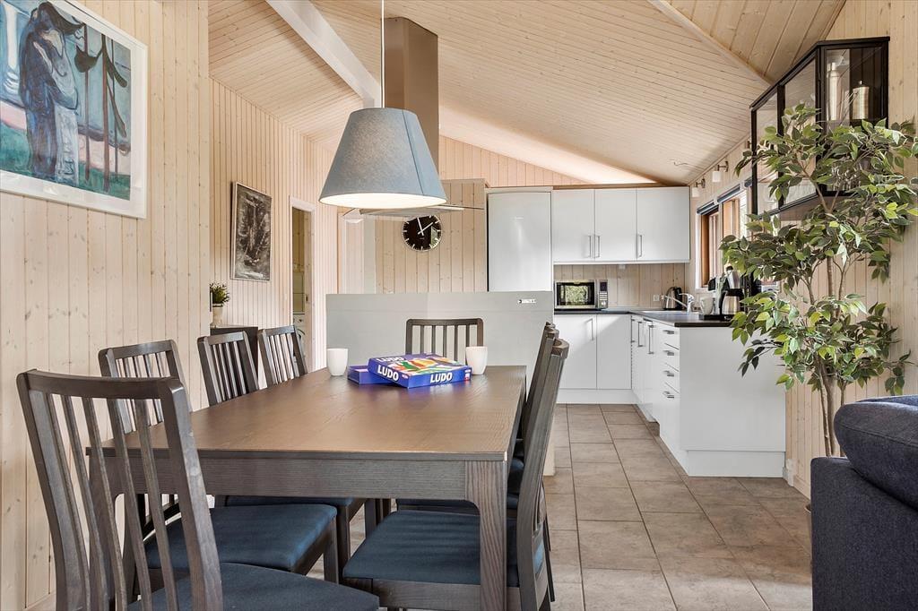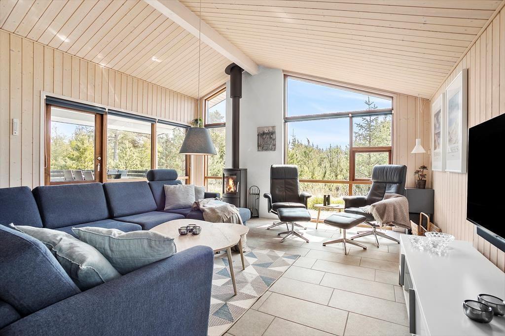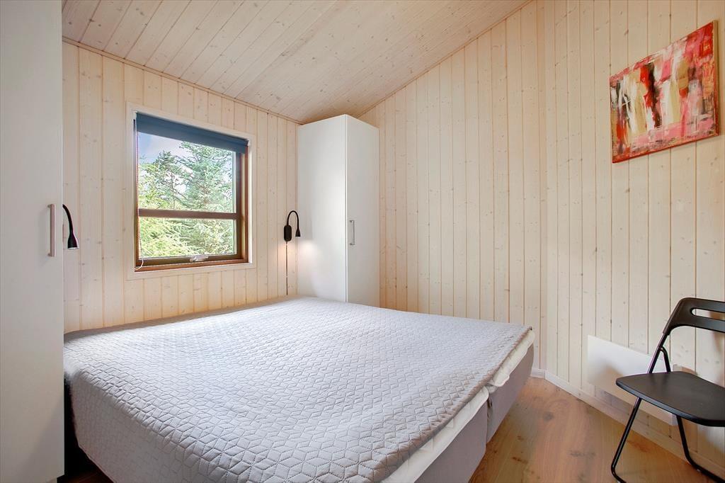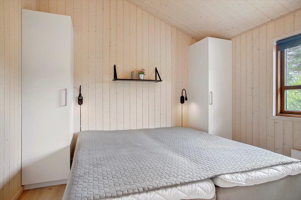 Sommerhuset er et lyst og velindrettet eksemplar fra 2011, der er blevet moderniseret i 2019. Hele 126 m2 har I at brede jer på inden døre, og med fire soveværelser og to badeværelser er planløsningen perfekt afstemt til otte personer. Husets sociale samlingspunkt er stuen, som er et stort og vinkelformet opholdsrum med åbent køkken, brændeovn, loft til kip og store vinduer, der inviterer dagslyset indenfor og giver udsigt til naturgrunden. Huset er generelt godt udstyret og der er bl.a. både almindelig- og Nespresso kaffemaskine til rådighed. Desuden hårtørrer, strygejern/bræt, tørrestativ, diverse spil, også er det værd at bemærke, at der i sengelamperne er indbygget USB ladestik. Har I ikke noget særligt på programmet, er det skønt at kunne slappe af i sofaen, mens I kigger ud på de krogede fyrretræer – eller med en god film på fladskærmen, der har kabel-tv, flere tilgængelige streamingtjenester og Chromecast tilsluttet. Skal der virkelig kobles af, kan I også nyde et spabad og en tur i saunaen på det største af husets badeværelser.