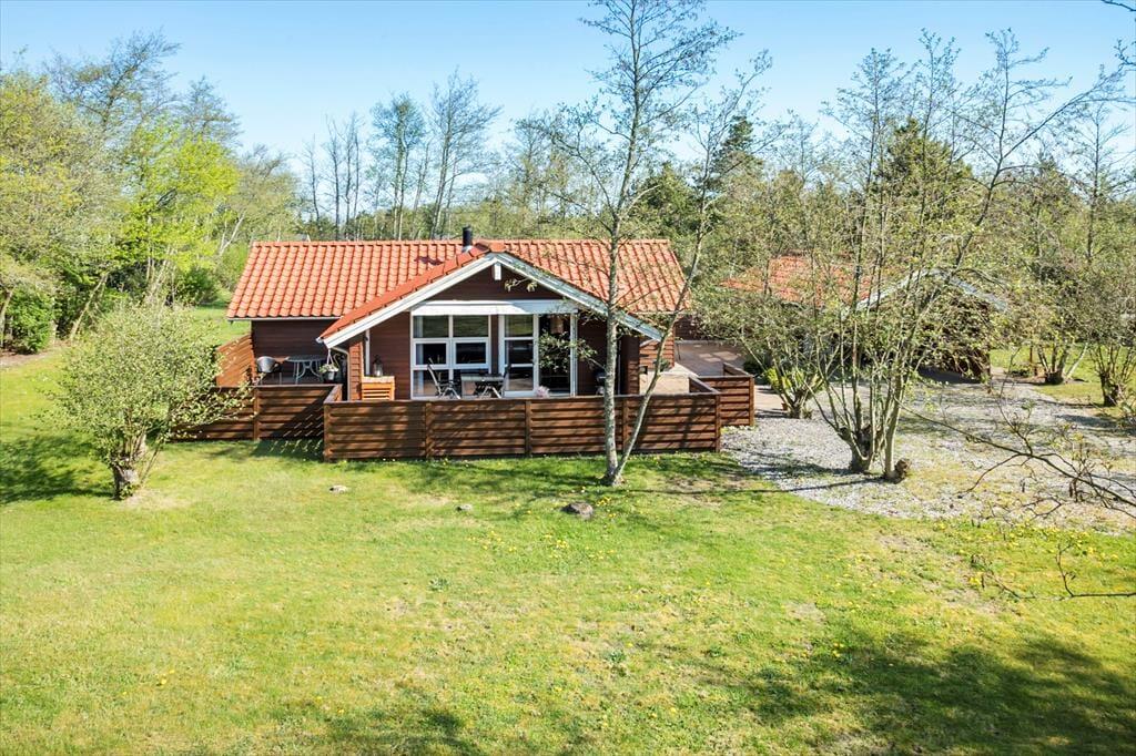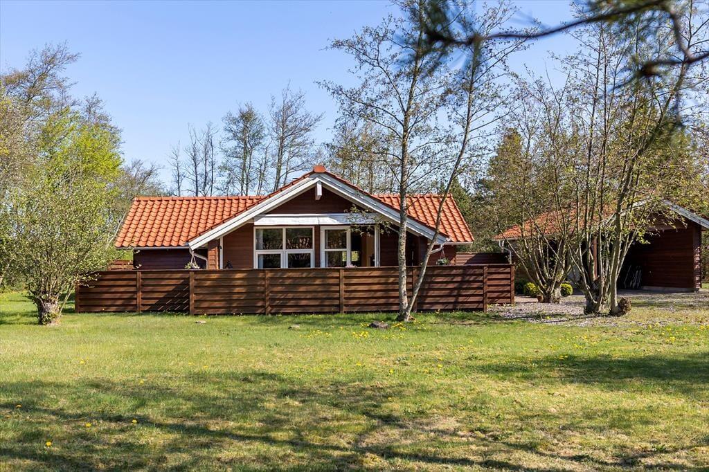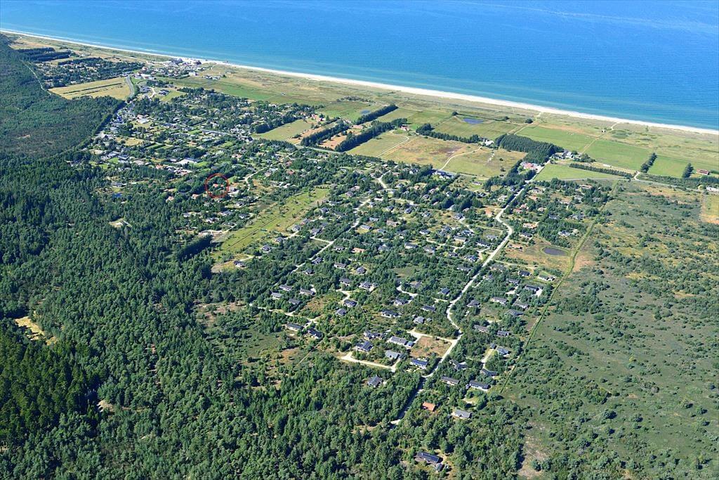 Sommerhuset ligger roligt placeret på den lukkede vej Tyttebærstien i et grønt område nær Vester Thorup Klitplantage, så her har I de helt rette rammer, hvis I er på udkig efter en fredfyldt og naturskøn ferieoase. Thorup Strands skovlegeplads kan I gå til på cirka ti minutter, mens I har halvanden kilometer til fiskerlejets kystlandingsplads, hvor kutterne stadig bliver trukket direkte op på stranden. Hos det lokale fiskehus kan I købe skånsomt fanget fisk med hjem til sommerhuset eller indtage velsmagende fiskeretter ved bordene direkte på stranden – en bedre udsigt til maden er svær at finde! Langs Vesterhavet er der mange fine kystbyer og seværdigheder at opleve, inklusiv fuglefjeldet Bulbjerg og havnebyen Hanstholm, der ligger lige på grænsen til Nationalpark Thy. Mod øst kan I køre til Svinkløv for at drikke eftermiddagskaffe på det fine badehotel eller nyde panoramaudsigten over havet fra toppen af Svinklovene.
