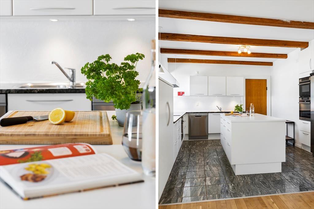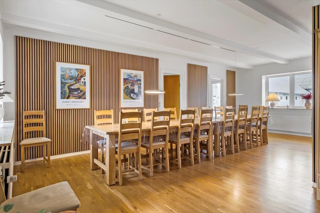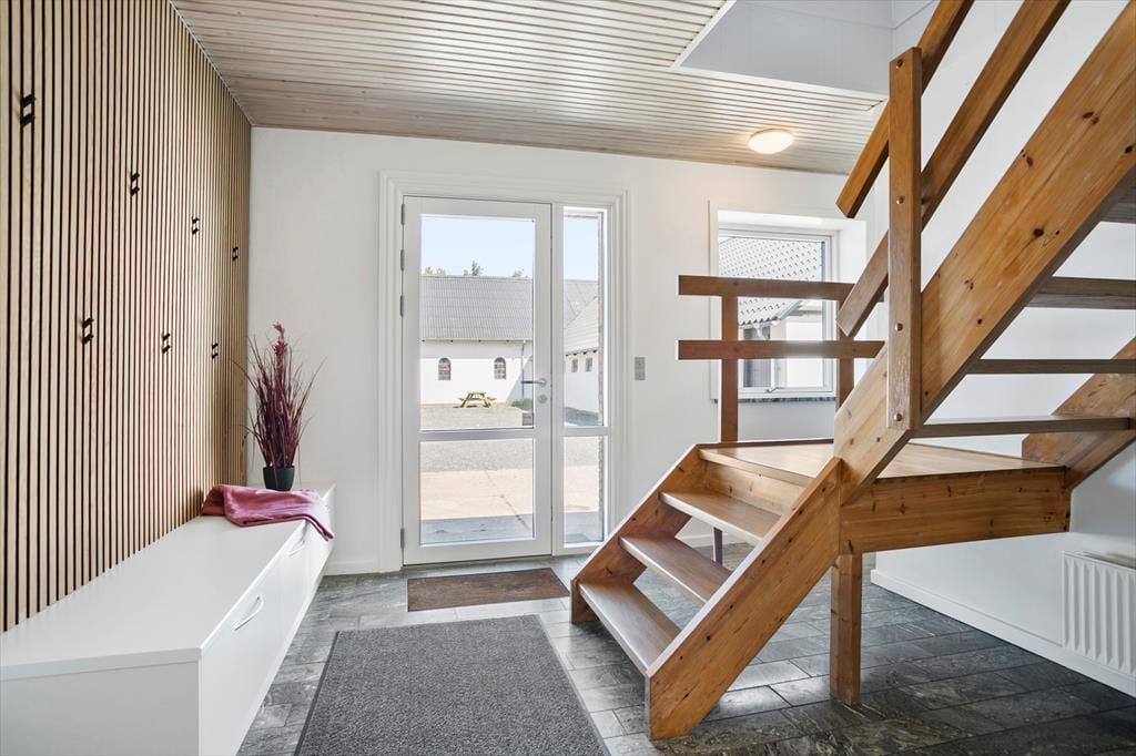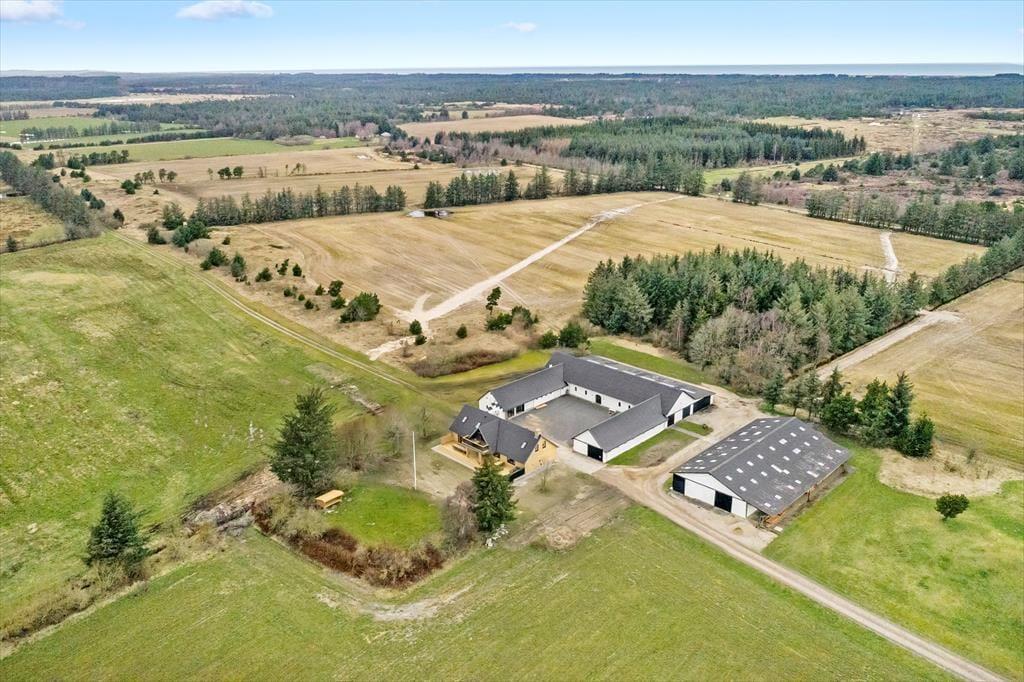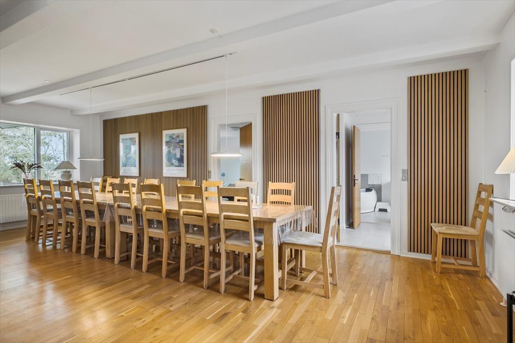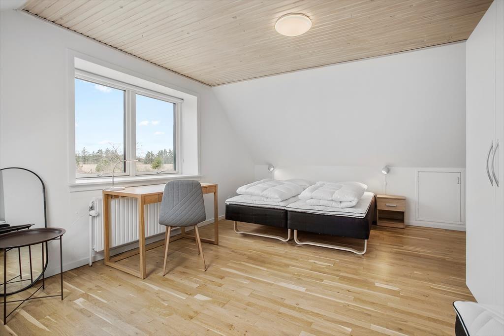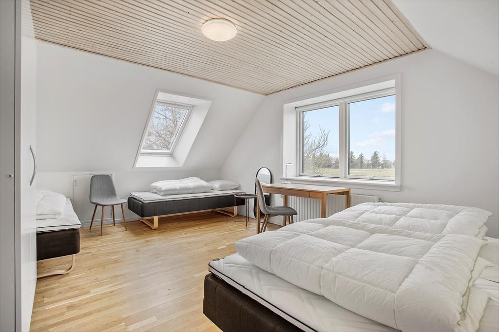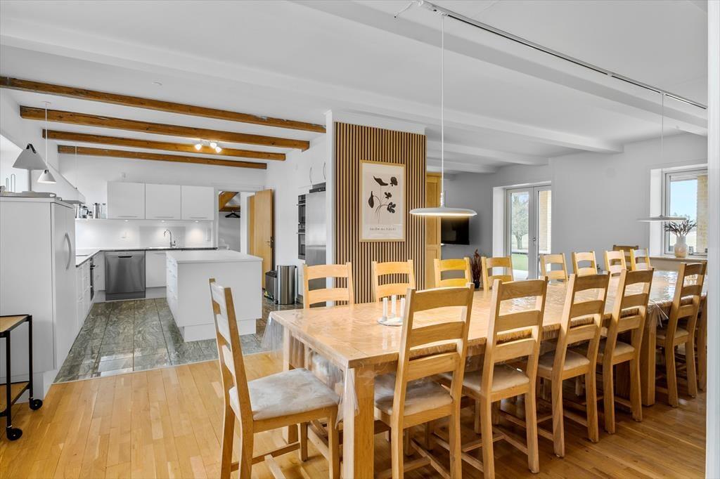 Det gamle stuehus er opført i 1914, men er komplet renoveret i 2022/23. De 260 m2 indeholder alt man kan ønske sig og med hele 6 soveværelser, er ejendommen særdeles velegnet til flere familier som ønsker at tilbringe kvalitetstid sammen, eller hvis en helt særlig begivenhed skal fejres. I stueplan er det rummelige køkken moderniseret og udbygget med bl.a. tre ovne, to opvaskemaskiner og god køle-fryseplads. Herfra er der direkte adgang til stuen og det flotte spisebord, hvor der er plads til alle og hyggen kan finde sted. Afslapning foran tv´et foregår i den anden ende af vinkelstuen og i den tilstødende stue, er det oplagt med brætspil, gode snakke, eller måske et glas vin foran pejsen. På 1. sal findes der fire rummelige soveværelser, hvoraf to har udgang til en balkon med den skønneste udsigt over de omkringliggende marker. Der er 2 badeværelser og ét gæstetoilet til rådighed – begge badeværelser endda med spabad, hvis I trænger til lidt ekstra forkælelse.