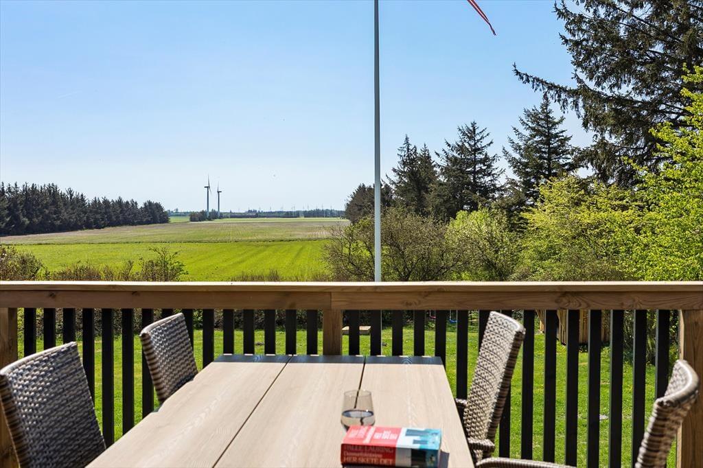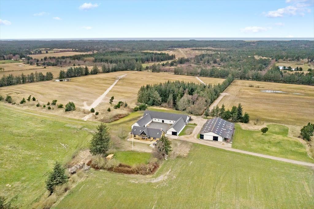 Ejendommen er beliggende komplet ugeneret og der er langt til nærmeste nabo. I stedet er I omgivet af marker, skov og generelt fantastisk natur og rigt dyreliv. Fjerritslev er den nærmeste by og byder på et godt og varieret handelsliv, og her kan man også holde sit golfhandicap ved lige under ferien. Afstanden til Vesterhavet er 4 km – uanset årstid, vejr og vind, er det store hav altid fascinerende og både en badetur i de blå bølger, eller en frisk gåtur i vandkanten med mulighed for at finde rav, skaller og smukke sten er altid gode oplevelser. Ganske tæt på ejendommen og for enden af Udklitvej, finder I ”Klim Bjerg” som er et attraktivt naturområde med afmærkede vandrestier, flotte udsigter og ikke mindst det åbne kalkbrud og ”Klim Kalkovn” er et besøg værd. Er I mere til MTB, er der mange gode spor i Kollerup Plantage som er ca. 3 km væk, og har I mod på mere, er ruten i Svinkløv Plantage kåret som Danmarks bedste.