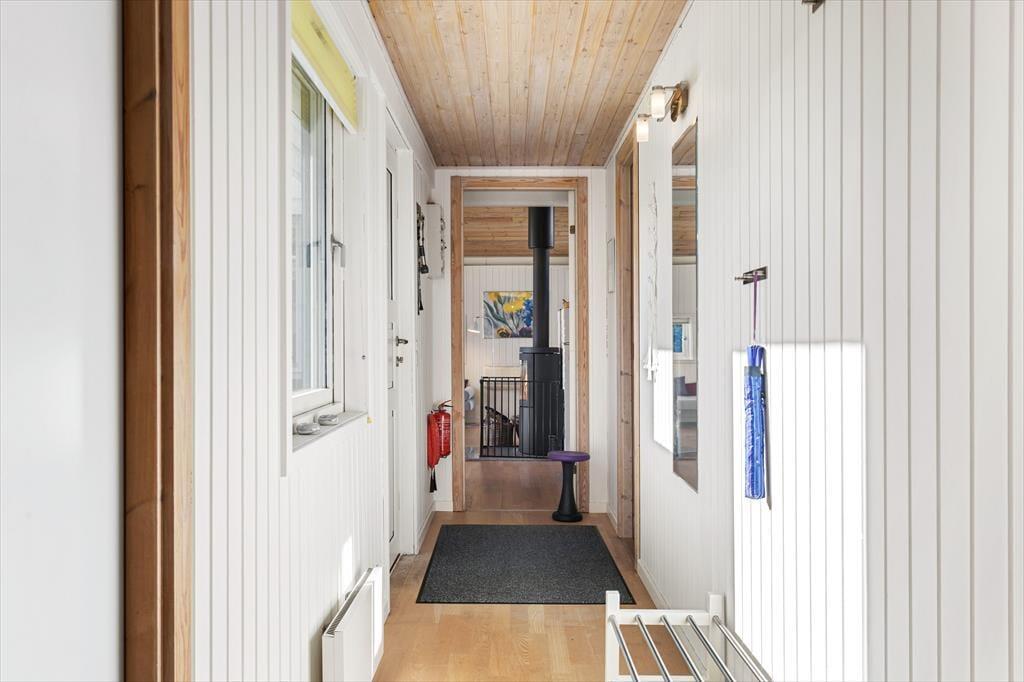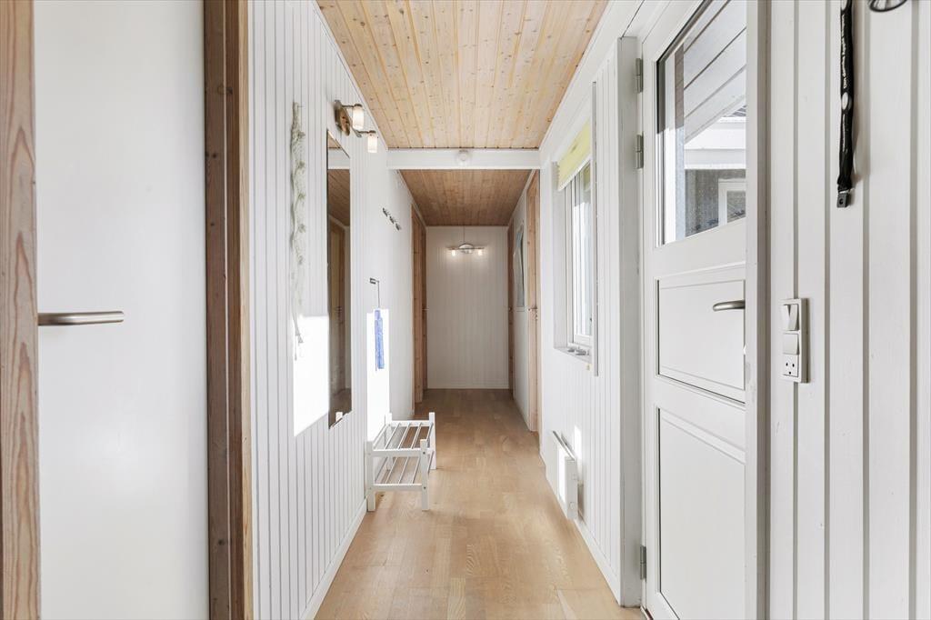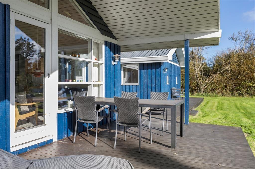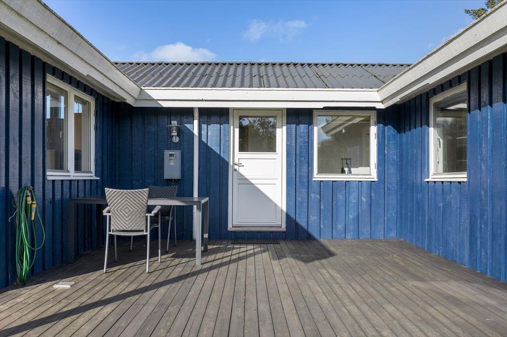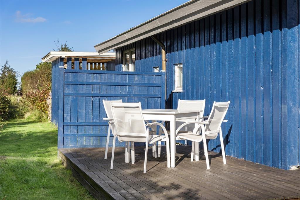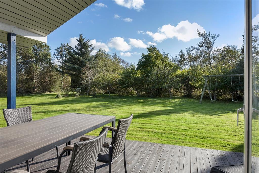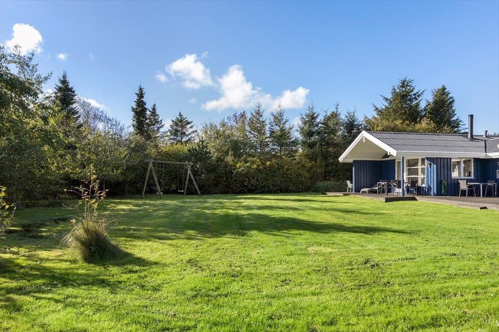 Sommerhusets terrasse breder sig på sydsiden af huset, og her er der gode chancer for at finde en opholdsplads med både læ og sol. Der er også et overdækket areal, hvis I er på udkig efter skygge eller gerne vil blive siddende ude om aftenen uden at skulle bekymre sig om den faldende dug. Grunden er enkelt anlagt med randbeplantning og en stor græsplæne, og til børnene er der gyngestativ.