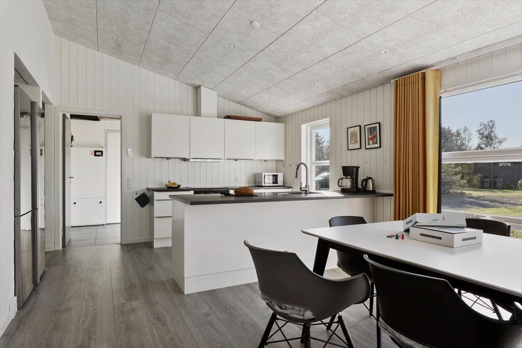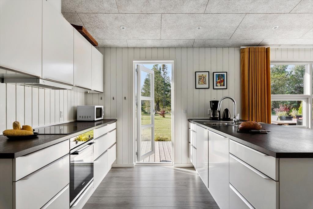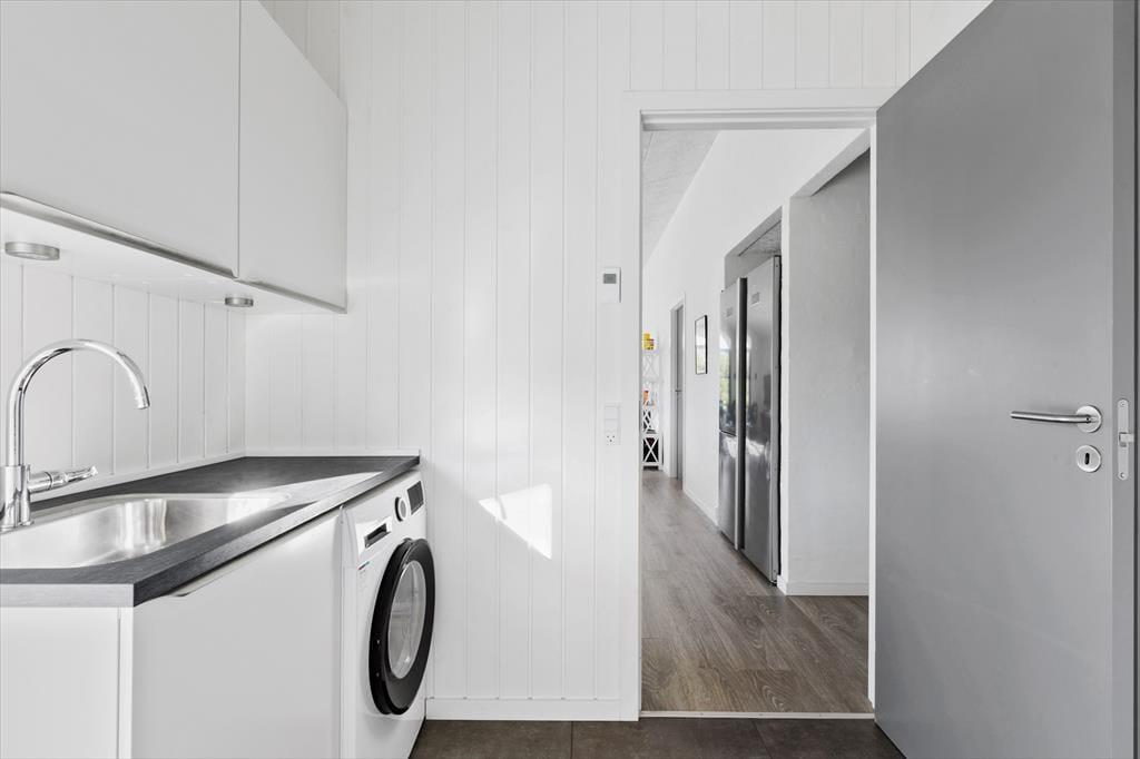 Når I træder ind i huset, møder I straks en lys og imødekommende atmosfære. Det åbne opholdsrum har store vinduer, der lukker masser af naturligt lys ind. Her kan I synke ned i de komfortable møbler, spille brætspil eller nyde en god film på fladskærms-tv'et. Køkkenet ligger i åben forbindelse med stuen, så I kan tilberede familiens måltider, mens I stadig er en del af fællesskabet. Huset har fire indbydende soveværelser, hvor I kan trække jer tilbage og få en god nats søvn, og derudover er der et lyst badeværelse og et praktisk gæstetoilet, der gør det nemt for alle at komme til.