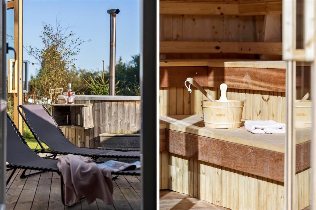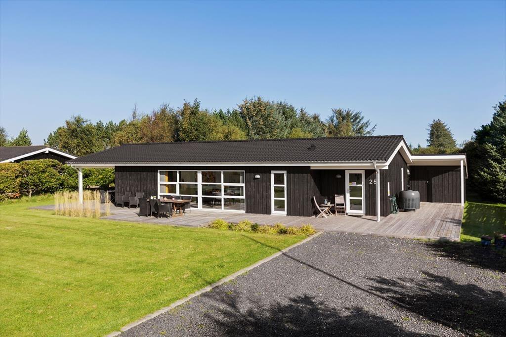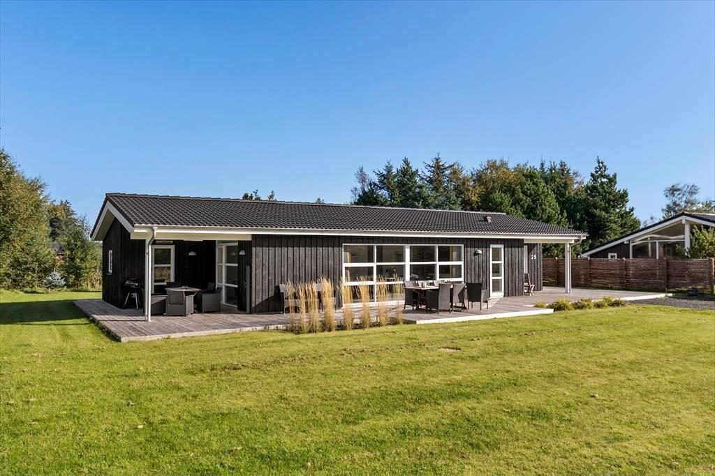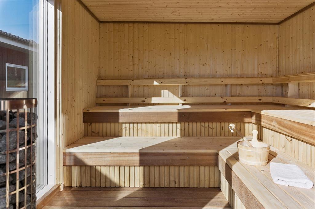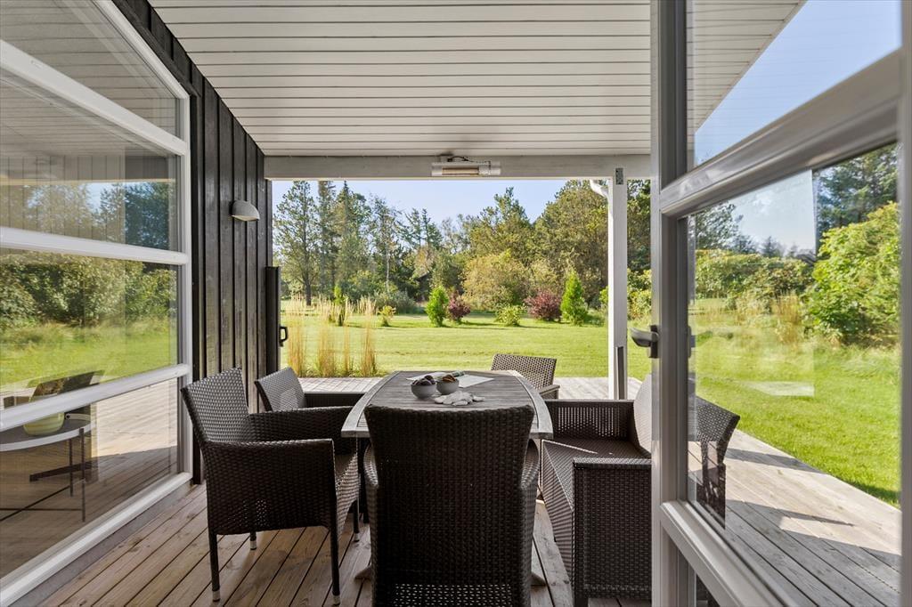 En af de absolutte perler ved dette sommerhus er den skønne terrasse med wellnessområde. Her kan du forkæle dig selv med en tur i vildmarksbadet eller nyde varmen fra den udendørs sauna – uanset om det er sommer eller vinter. Efter en lang gåtur til stranden eller en tur i klitterne er dette det ideelle sted at slappe af og genoplade batterierne. Den store terrasse indbyder også til måltider i det fri, og med havemøbler, liggestole og grill er der alle muligheder for hyggelige grillaftener i de lyse sommernætter. Haven er omkranset af smuk natur, og børnene kan lege trygt på grunden, mens de voksne nyder udsigten eller slapper af med en god bog.