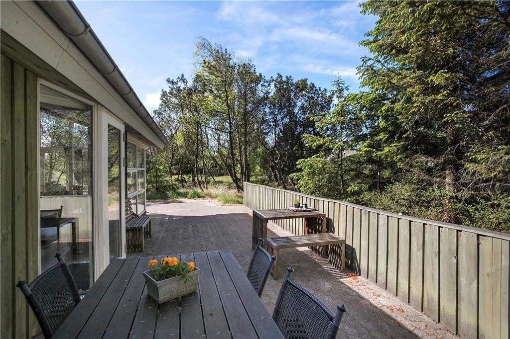 Omkring huset er der tre åbne terrasser med gode muligheder for at finde både læ og gode solkroge. Til terrasserne er der sørget for liggestole, parasol, grill og havemøbler.