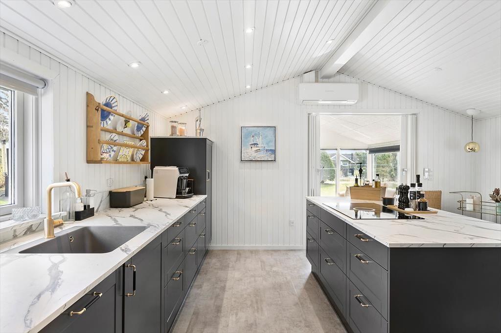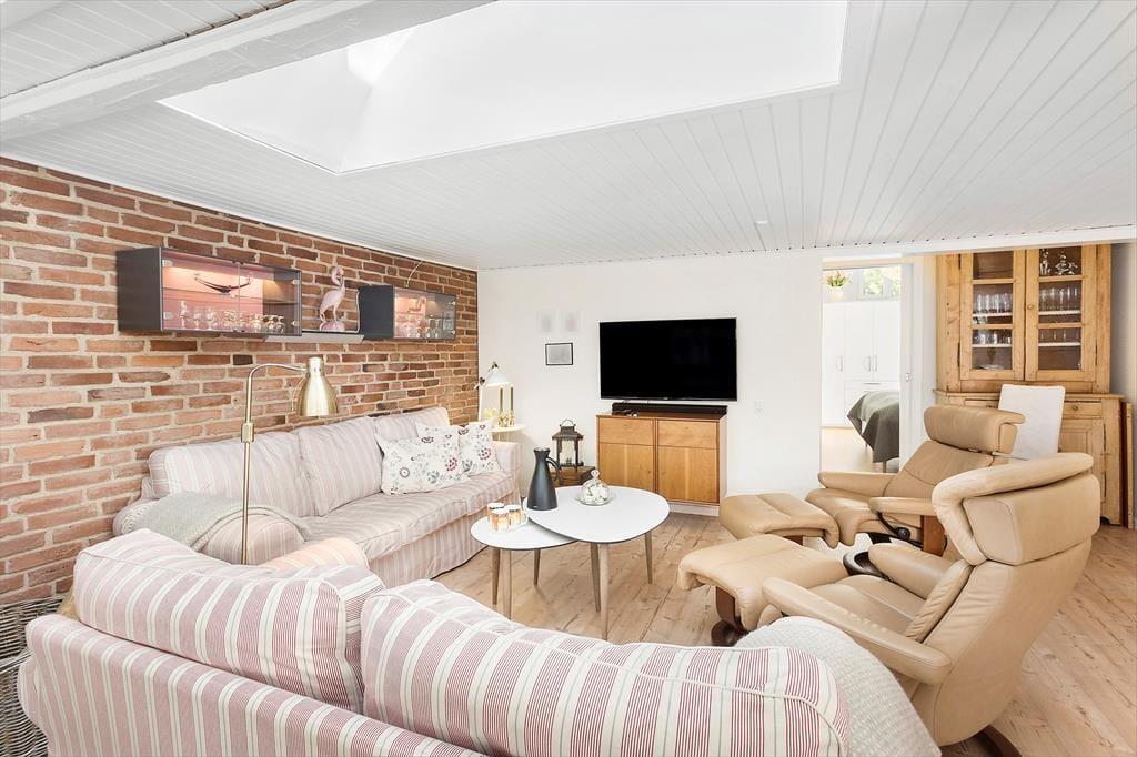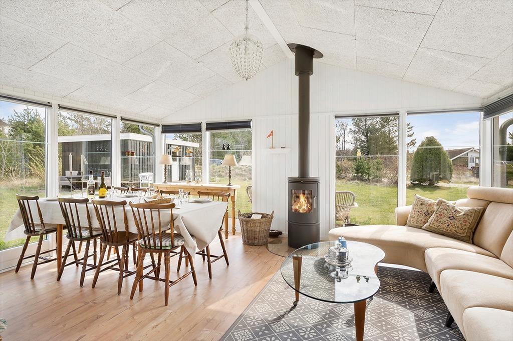 Det er ikke vejret eller årstiden, der skal afgøre, om I får en god ferie her i huset. Selvfølgelig er det skønt, når solen står højt på himlen, men der er næsten grund til at håbe på bare en smule regn, for så er det næsten endnu hyggeligere at krybe sammen inden døre med varm te, en god bog og ild i brændeovnen. Her i huset er der faktisk ikke bare én, men to brændeovne, og både stuerne og køkken-alrummet er skønne og stemningsfulde steder at opholde sig. Hvis du elsker at lave mad, vil du straks blive glad for det flotte og veludstyrede køkken – og hvis du hellere vil underholde kokken, kan du glæde dig til at sidde på slagbænken, hvorfra du kan holde gang i hyggesnakken. Tre soveværelser og to badeværelser hører med til planløsningen, og i annekset finder du et ekstra soverum, der også fremstår lyst og indbydende.